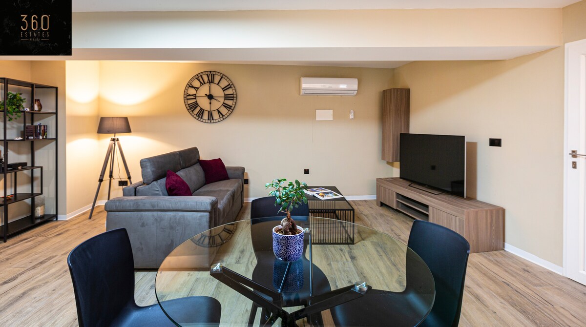 Potopite se v razkošje v tem obmorskem oddihu v 6. nadstropju na Malti. Sprostite se na sprednji terasi, medtem ko uživate v oddaljenih razgledih. Popolnoma zasebna nastanitev ima 2 prostorni dvoposteljni spalnici, 1 kopalnico, opremljeno z vrhunskimi ortopedskimi vzmetnicami za največje udobje. Prepustite se vrhunski opremi, vključno z izjemno hitrim Wi-Fi-jem, 3 klimatskimi napravami, 3 Echo Dots za avtomatizacijo doma in Amazon Music Unlimited. Uživajte v zasluženem počitku v tem ekskluzivnem prenočišču na eni najboljših turističnih točk na Malti.
