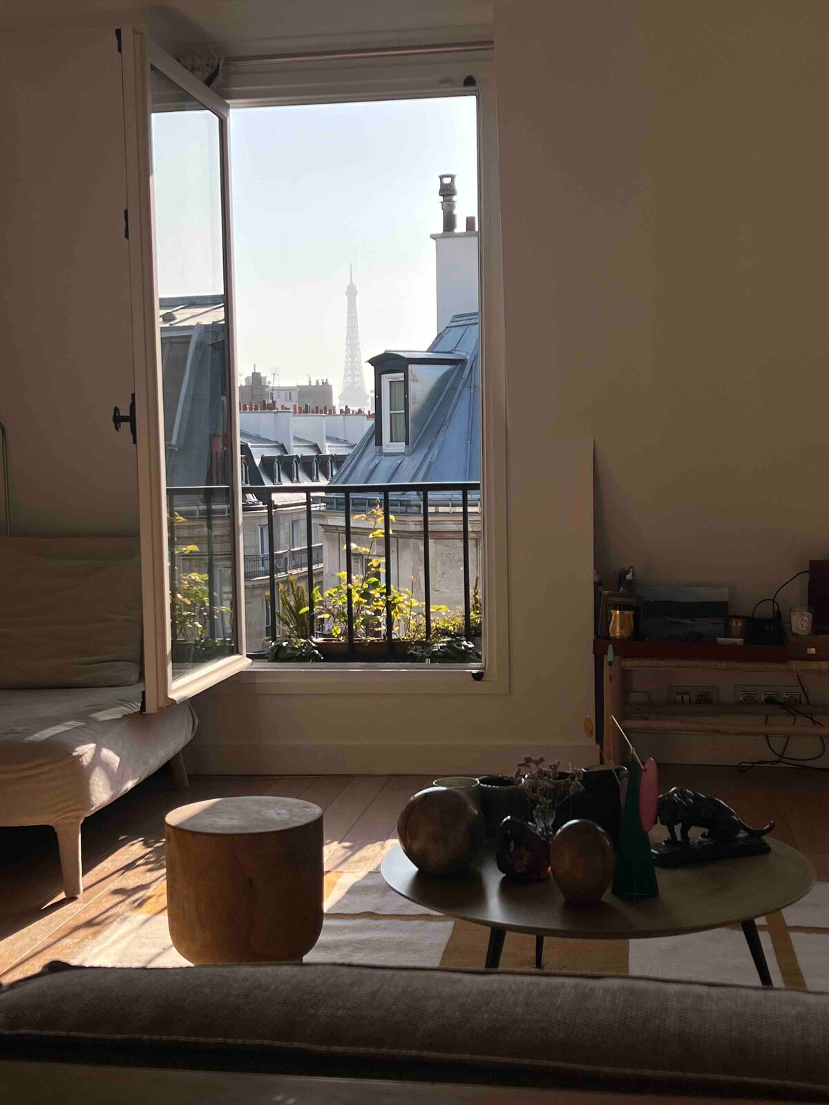 Ta nastanitev gleda na strehe Pariza in ponuja čudovit razgled na Eifflov stolp. To je eno zelo lepih in svetlih stanovanj. Razpoložljivo: -klimatizacija -wifi - Pralni in sušilni stroj - pomivalni stroj - dvigalo