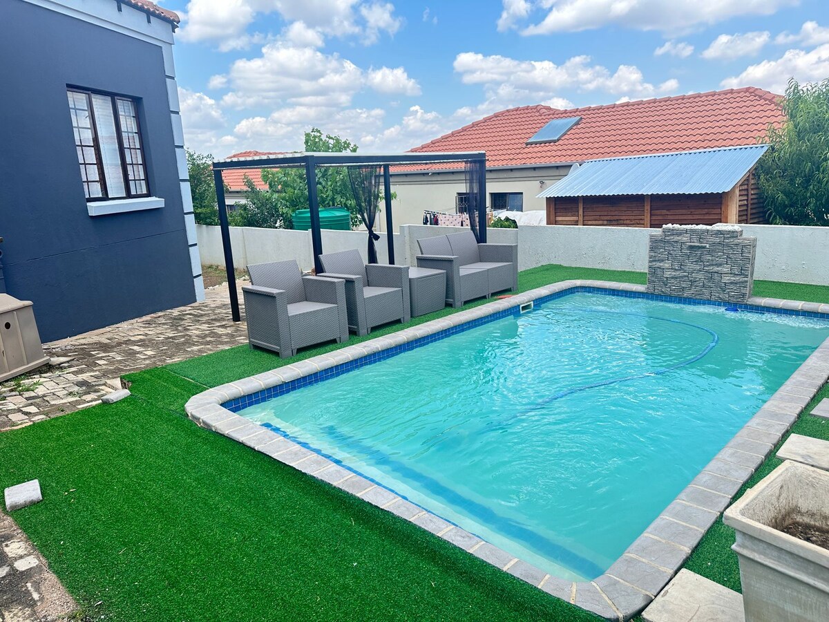 To osupljivo trisobno stanovanje je na voljo vam in z družino ali prijatelji. z daljinskim upravljalnikom vrat, ključi stanovanja. Zelo miren prostor za umik in počitek 5 minut stran od nakupovalnega središča Mid Water ter 10 minut stran od nakupovalnega središča Middleburg.