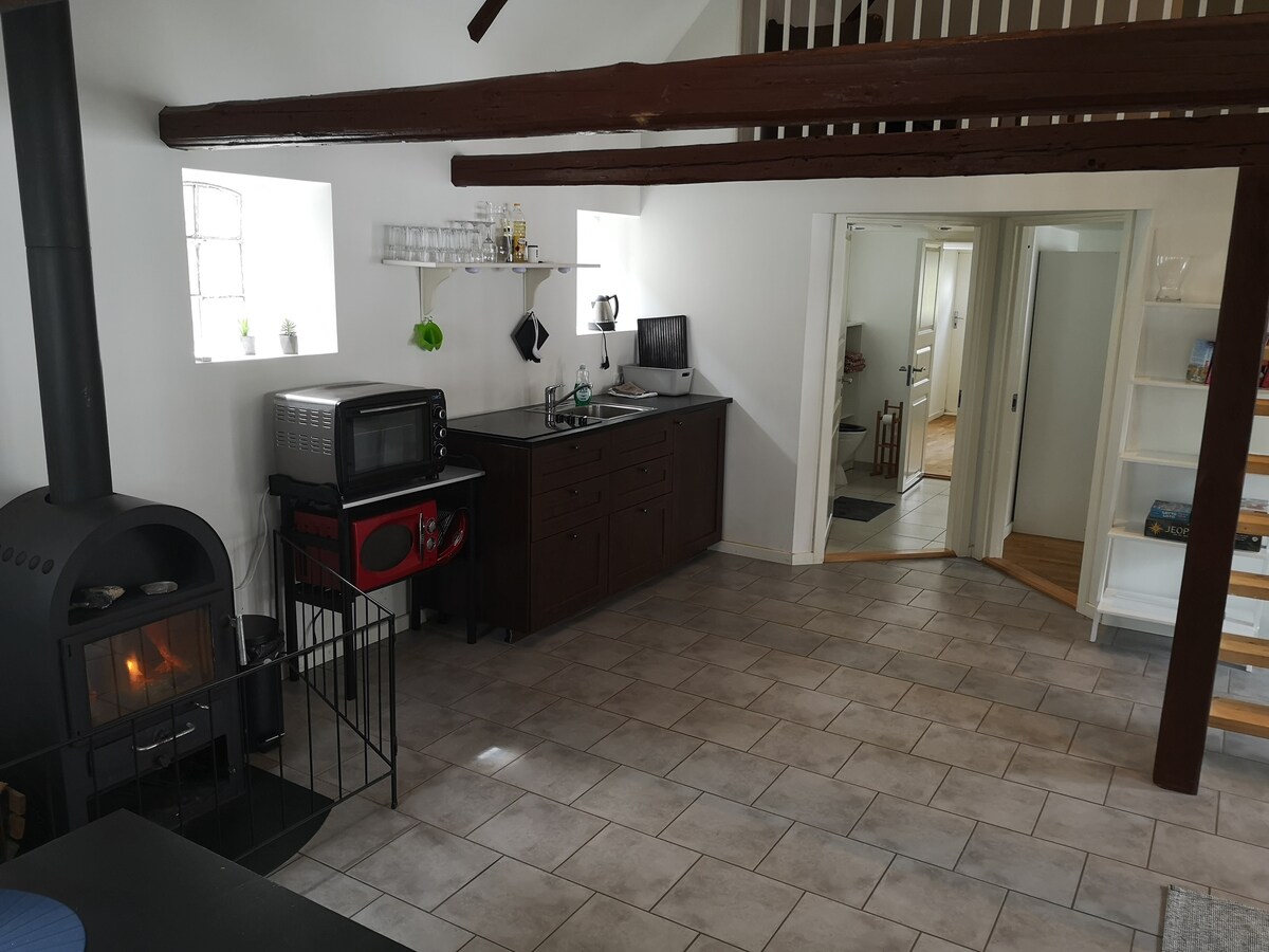 Imamo čudovito stanovanje, povezano z našo kmetijo, blizu plaže Vejlby Fed. Ima 60 m2 in ima kuhinjo - kopalnico, spalnico, TV Wi-Fi, dnevno sobo v 1. nadstropju. Stanovanje je primerno za par z 1-2 manjšima otrokoma. Naša hrana iz divjine je na voljo za 300 DKK ali 40 EUR. Upoštevajte, da kopel v divjini ni na voljo, če je močan mraz. Ob odhodu je zaželeno, da se opravi čiščenje. Če gostje ne želijo čistiti sami, lahko plačajo strošek čiščenja v višini 400 DKK.