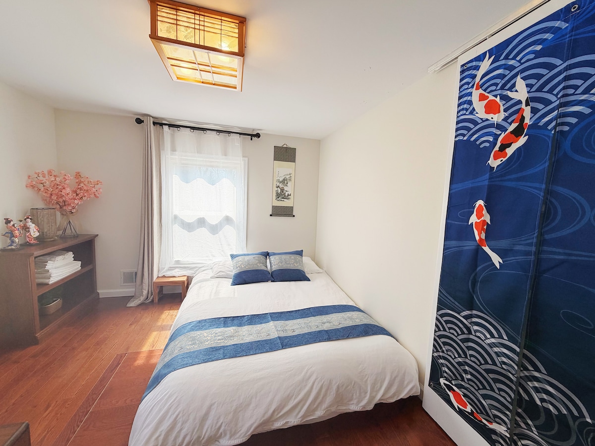 Sprostite se v zasebnem apartmaju za goste v prvem nadstropju našega prenočišča z ločenim vhodom in zasebno kopalnico za vaše udobje in zasebnost. Apartma vključuje udobno spalnico in udoben dnevni prostor, ki je premišljeno opremljen z vsemi osnovnimi potrebščinami, ki jih potrebujete za prijetno bivanje - v kuhinji. *5 minut stran si privoščite vse, kar želite jesti, tudi pozno v noč, številna mesta pa so odprta do 2-3 ure v središču New Brunswicka.