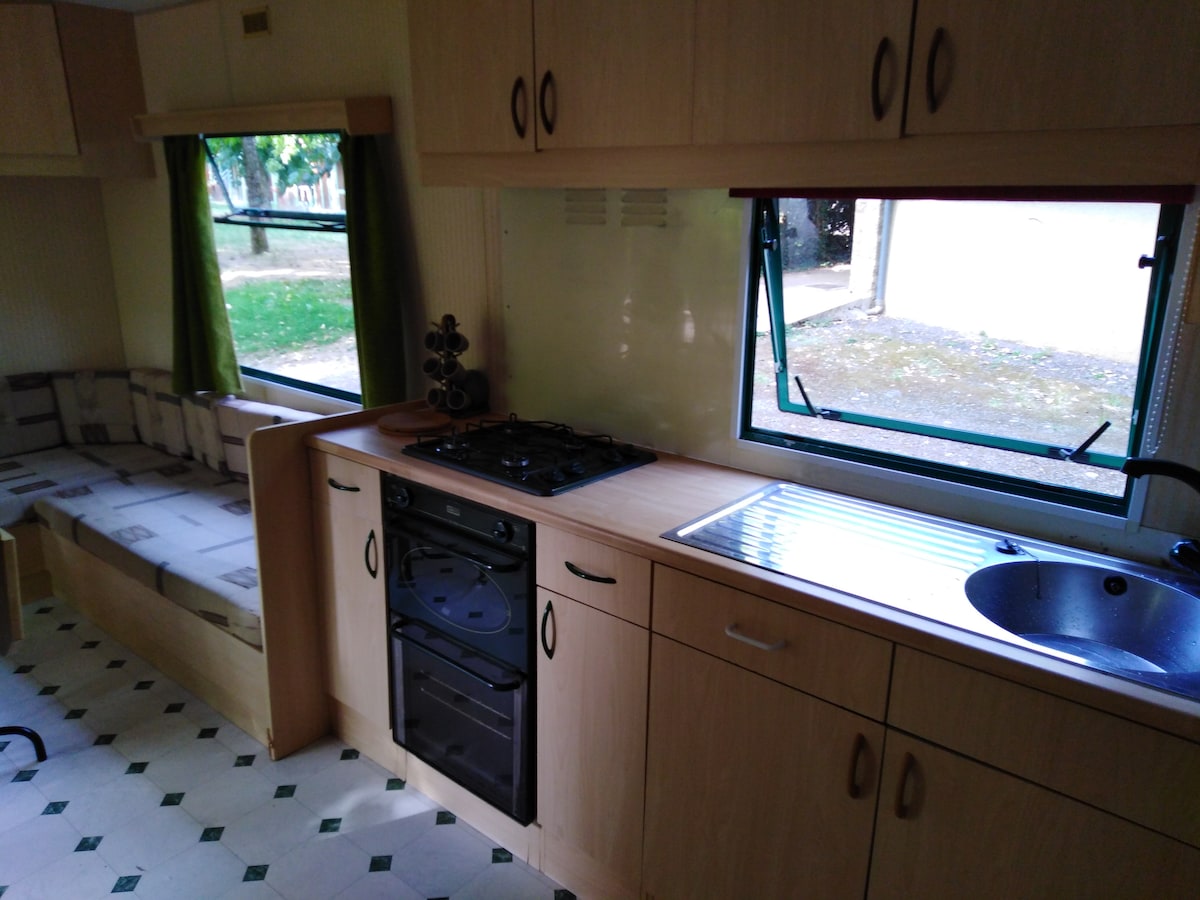 Popolnoma opremljena mobilna hišica v kampu* *** pogled na jezero