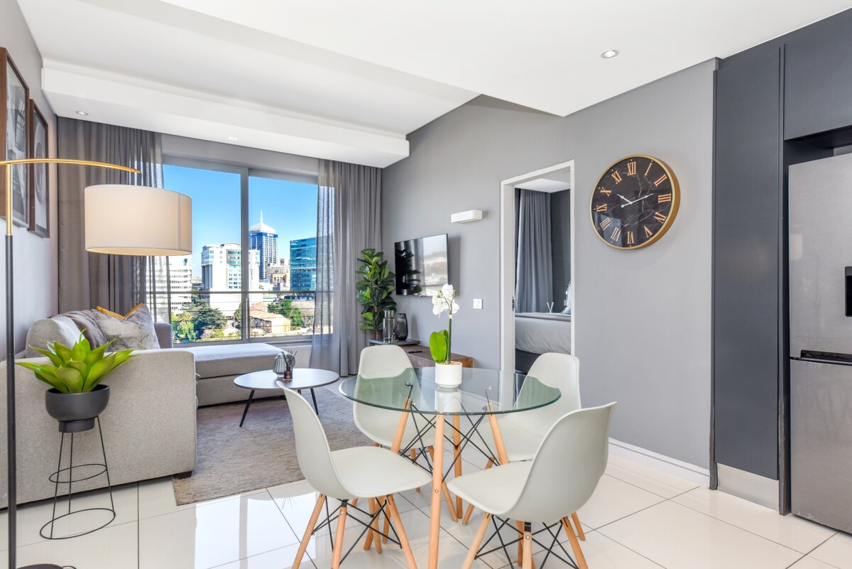 Poiščite vse, kar je na dosegu roke v luksuzno opremljenem stanovanju s postrežbo. Sprostite se pred televizorjem ali pa občudujte pogled na mesto skozi okna v 9. nadstropju. Hotelske funkcije vključujejo 24-urno namensko recepcijo, notranjo jedilnico, sobno postrežbo, bazen in telovadnico. Enota ima neprekinjeno napajanje, če v mestu pride do občasnih motenj električne energije. Nahaja se v CBD-ju, manj kot 1 km od postaje Gautrain in le 2 km od trga Nelson Mandela.
