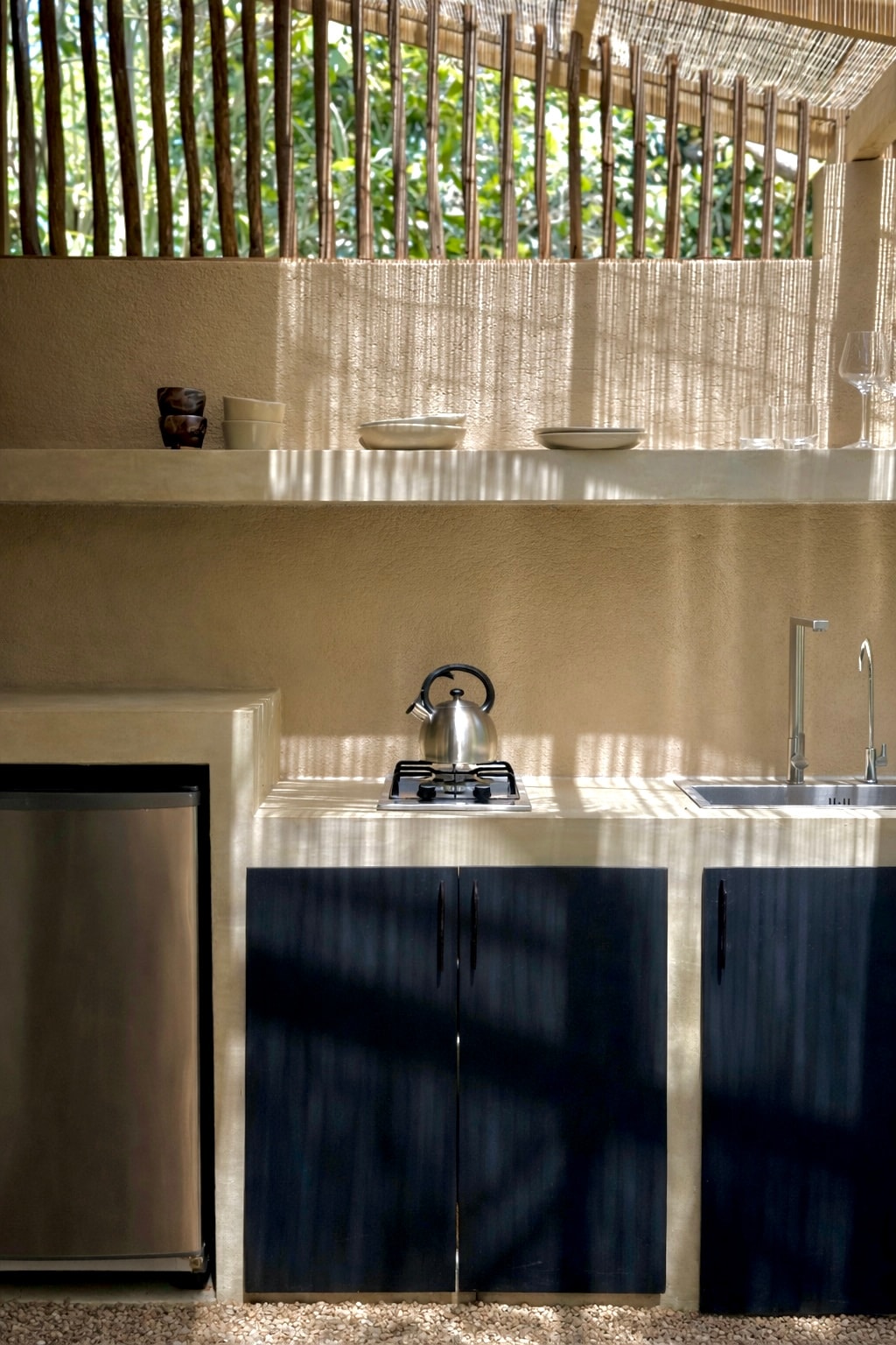 Cocoya is a working coconut and cinnamon plantation. Our house Sama means "Peace" in Sinhalese. It is designed to be a simple, open and spacious plantation home that connects with nature. It features an open living space, a kitchen and direct access to a 17m pool. Upstairs we have a master suite and junior bedroom that share a balcony with plantation views. Both have ensuite open-air showers. Guests enjoy a fully equipped kitchen and exclusive pool access. We do not have air-conditioning.