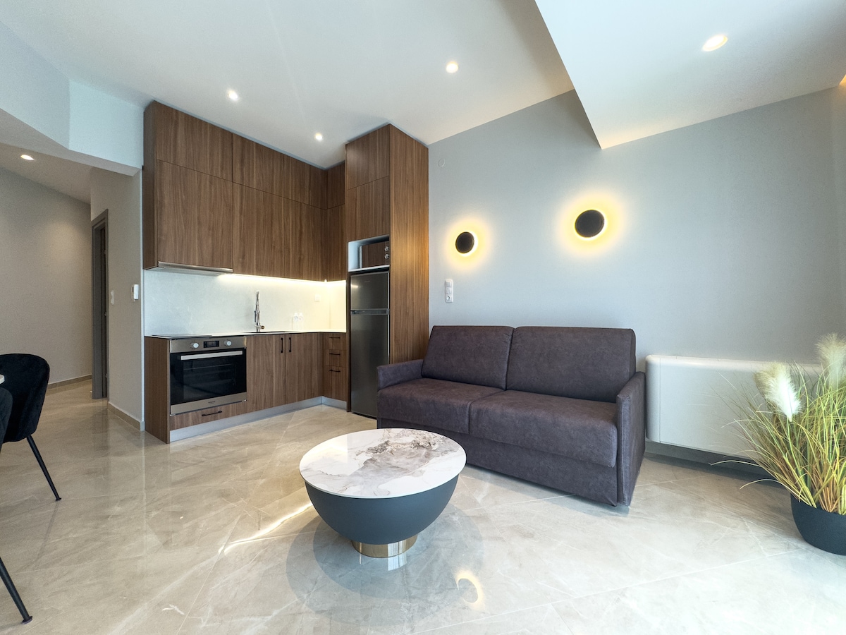 Stanovanje se nahaja v osrčju Kalamarije, živahnega mestnega območja Soluna. To stanovanje ponuja sodobno estetiko in funkcionalnost. Svetle in zračne sobe ustvarjajo vabljivo vzdušje, pohištvo pa združuje sodobne linije z udobjem. Prostorna dnevna soba in popolnoma opremljena kuhinja sta primerni za daljša bivanja.