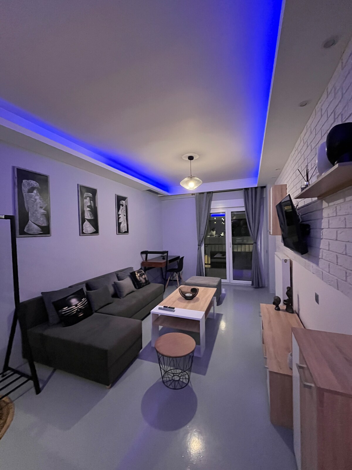 Razkošno stanovanje v velikosti 70 kvadratnih metrov, 15 minut od središča mesta. Dostopno peš, z avtobusom ali podzemno železnico. Zgornje nadstropje, balkon s pogledom na gore nad starim mestom Solun. Sodobna, pametna zasnova z najboljšimi materiali in lesenimi oblogami. Popolnoma opremljena kuhinja, Nespresso, 50-palčni televizor, hiter internet, Netflix in Disney+, vrhunska vzmetnica,pralni/sušilni stroj Le nekaj sekund od obale, 10 minut od glasbene dvorane Idealno za poslovne potnike in turiste.