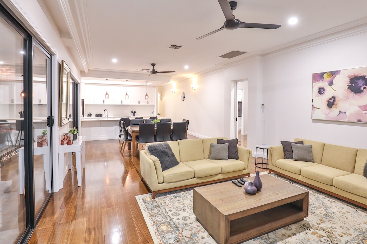 Mirna osrednja lokacija na cesti, ki se nahaja neposredno nasproti čudovitega parka z velikimi odprtimi travnatimi površinami. Hiša je bila obnovljena, da bi ohranila svoj šarm iz sredine stoletja s sodobnimi značilnostmi Nova klimatska naprava z deljenim sistemom v vsaki spalnici in dnevni kuhinji. 55-palčna pametna televizija, kuhalna plošča, pečica, hladilnik, mikrovalovna pečica, pralni stroj, pomivalni stroj, aparat za kavo in pohištvo. Neomejen Wi-Fi. Enostaven sprehod do CBD-ja, reke Murray, turizma, bazena, knjižnice, bolnišnic in golfa