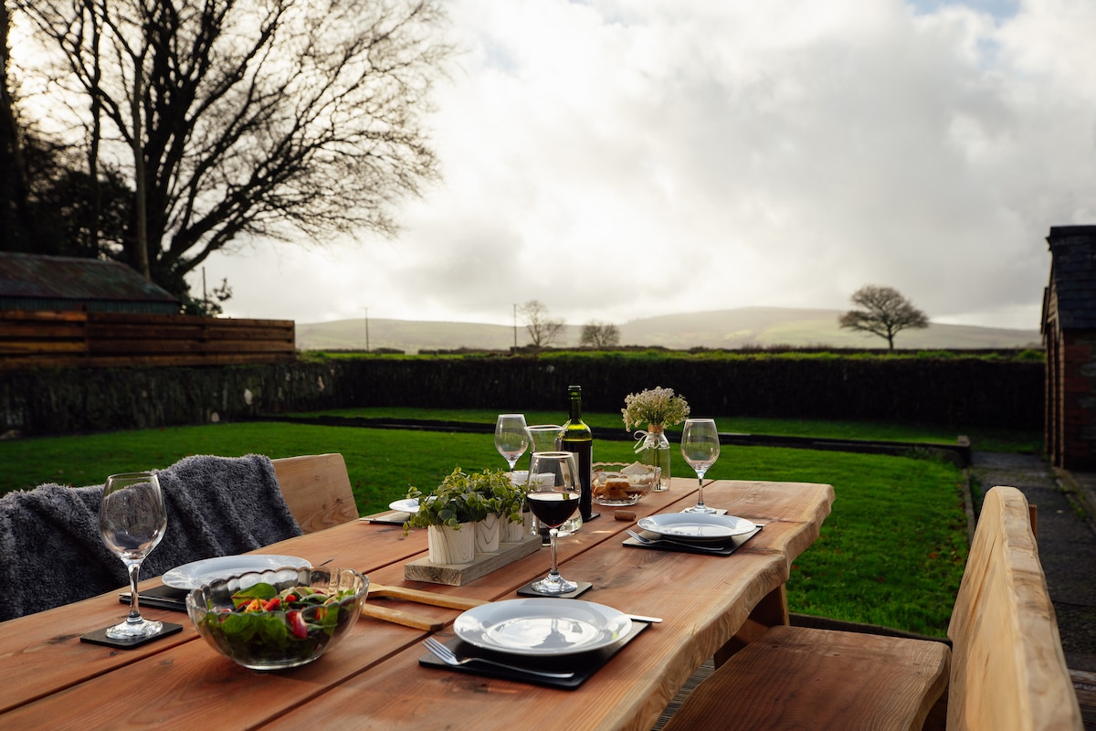 Ty Venda is a two-bedroom annexe with an open-plan lounge, diner, and fitted kitchen. On the first floor are two bedrooms; one has a standard double bed and the other a smaller 4ft double suitable for one adult or two children. The bathroom has a gas-heated shower and WC. There is an additional WC on the ground floor. Patio doors lead out onto the garden, which is fully enclosed, making it secure for any fur babies that visit. It is equipped with a picnic table and benches for alfresco dining.