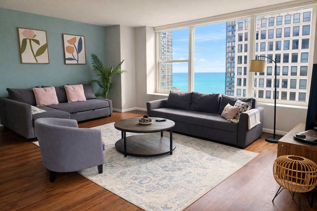 Dobrodošli! Gostje imajo radi naše prenočišče, ker: - Nahajate se NEKAJ SEKUND od JEZERA in VELIČASTNE MILJE - Do znamenitega hotela Drake in plaže Oak Street vas loči le nekaj korakov. - Sprehodite se do vseh priljubljenih znamenitosti, zaradi katere je Chicago tako odličen! - Na novo prenovljena notranjost z odprto razporeditvijo tlorisa - Parkirno mesto na kraju samem, dostop!! - Mirna streha s pogledom na jezero - Hitri WiFi - Super udobne postelje! - Kuhinjska kuhinja po meri - Nahaja se v mirni ulici - Pogled na jezero Michigan z naših oken od tal do stropa