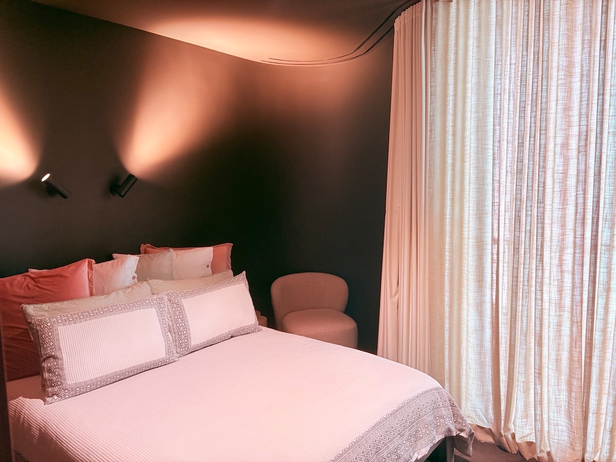 To podstrešno stanovanje ponuja odlično zasebnost in mir, zaradi česar je ponoči varno pustiti odprte zavese. Mestne luči ne bodo preveč svetle za spanje, vendar boste namesto tega uživali v očarljivi urbani pokrajini, ki spominja na prizore iz televizijske drame. Pretakajte klavirsko glasbo prek povezave Bluetooth, prižgite nekaj aromatičnih sveč, nalijte kozarec vina in se sprostite, medtem ko občudujete neskončne mestne luči in zvezdnato nočno nebo. V tem mirnem vzdušju se boste počutili sproščeno in pozabili na vse svoje skrbi.