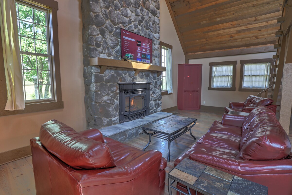 Čudovita, udobna, na novo prenovljena koča leta 2025 na 60 gozdnatih hektarjih, kot nalašč za oddih za pare. 8 minut do odličnega središča mesta za nakupovanje edinstvenih butikov, restavracij, lokalnih vinskih kleti, pivovarn in destilarne! Uživajte v miru in tišini v naravi. Udobno do masivnega kamina iz kamina, ki gori tako znotraj kot na zaslonih na verandi. Popolnoma nova zasebna masažna kad se ponaša z naravno izvirsko vodo in je tik pred vrati iz koče in gleda na naravne spomladanske ribnike.