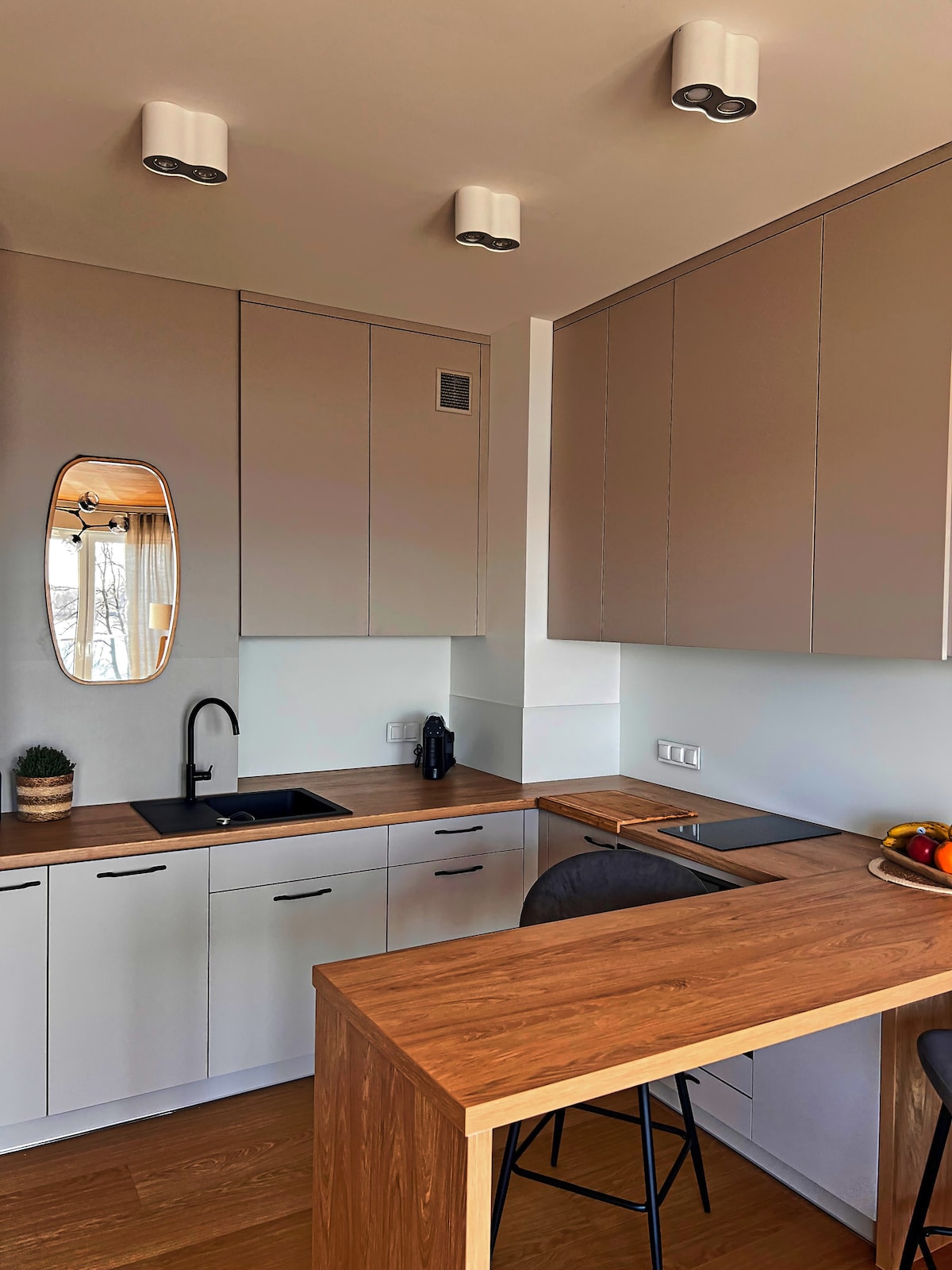 Stanovanje v središču Ełka, tik ob obali jezera, ob promenadi s številnimi pivnicami in restavracijami, ki strežejo lokalne specialitete. Prostorna dnevna soba z balkonom, klimatsko napravo, popolnoma opremljeno kuhinjo, hitrim internetom, televizijo, zasebno infrardečo savno in udobno spalnico. Idealno za sprostitev, delo na daljavo in masurske pustolovščine!