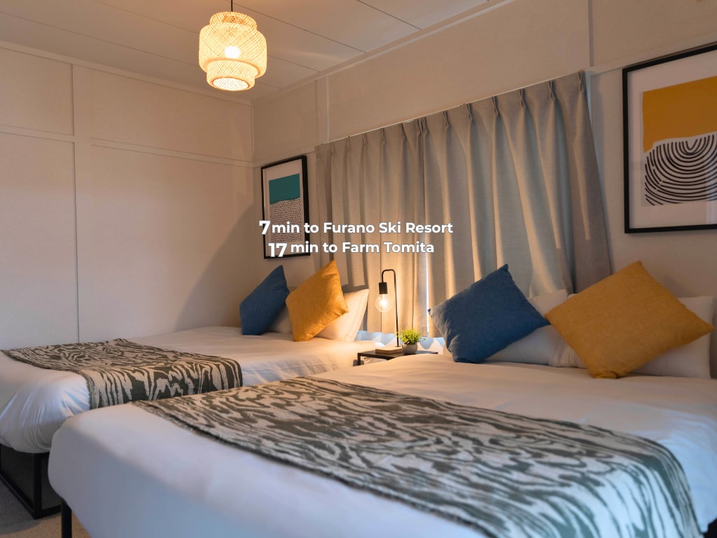 The room is located 4-minute walk from Biei Station for private use. It is convenient for travel by car as well as train, good access to restaurants, grocery stores. In summer, renting electric bicycles to tour hills is popular. In winter, how about a base for winter sports and photography? There are several ski resorts within 40 minutes to 90 minutes by car. Enjoy four seasons in Biei, Furano!