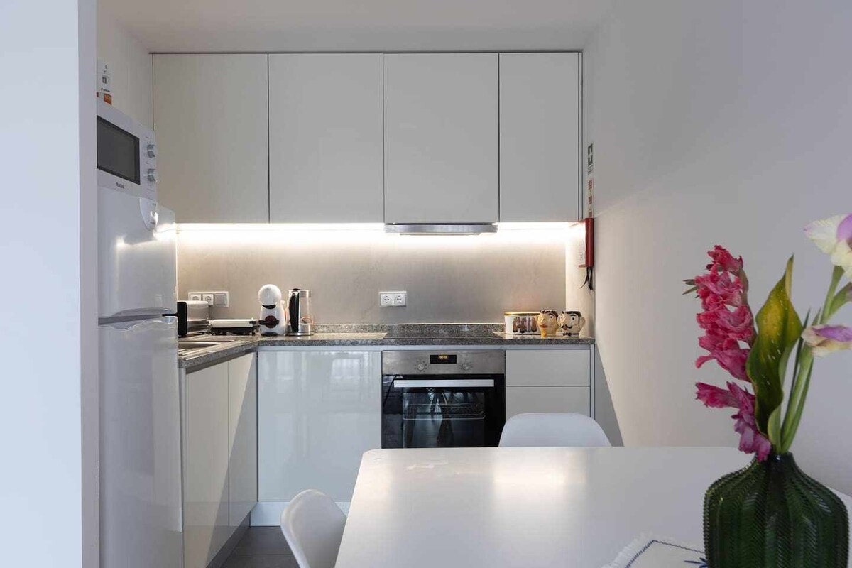 Decorado de forma irrepreensível com móveis de estilo mid century, principal característica deste apartamento é a bow window, com uma vista fantástica sobre a Avenida da Liberdade e os seus jardins. Ficar nestes apartamentos é viver no coração de Braga poder percorrer as ruas da zona histórica medieval com o seu comércio buliçoso, parar num café para saborear as especialidades locais visitar os principais pontos de interesse e ao fim do dia regressar a casa e desfrutar da tecnologia e glamour.
