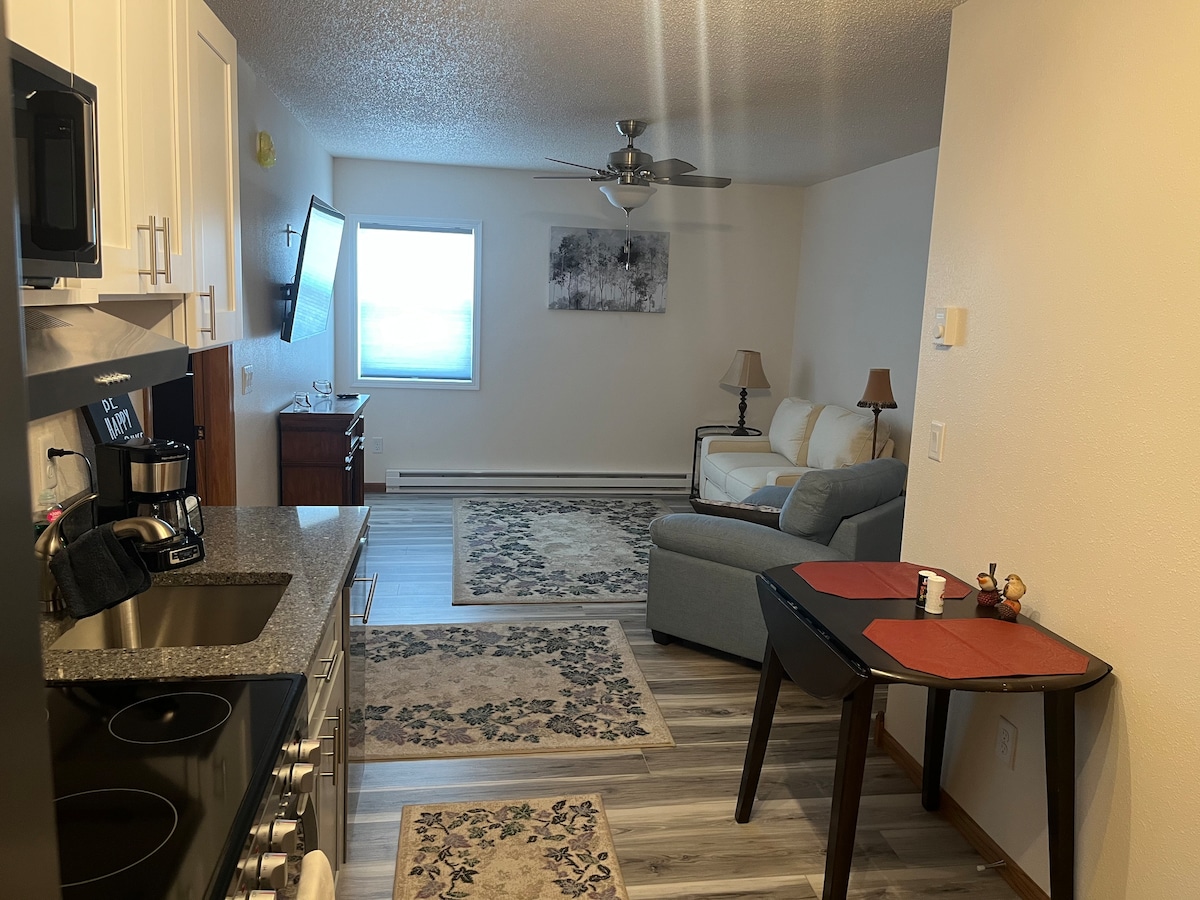 The whole group will enjoy easy access to everything from this centrally located historic building. Located in downtown Minot just minutes from the State Fairgrounds and next door to an award winning local brewery! Walk to downtown shops, bars and restaurants, park and Zoo. Then you can relax in the sauna after a fun day! ( Please note this apartment is in a historic building with some stairs )