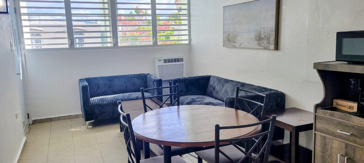 Majhna udobna odprta hiša ob obali v jugozahodnem mestu CaboRojo, ki se nahaja v soseski Joyuda z elegantnim in romantičnim okoljem, kot nalašč za oddih v dvoje ali za samostojnega popotnika. Tukaj imate vse, kar potrebujete, da se izognete vsakodnevni rutini. Popijte kozarec vina ali jutranjo kavo, medtem ko uživate v morskem vetriču, zvoku valov in čudovitem razgledu na morje in Isla Ratones. Če boste imeli srečo, boste videli delfine, morske krave in najbolj neverjetne sončne zahode. DOBRODOŠLI!