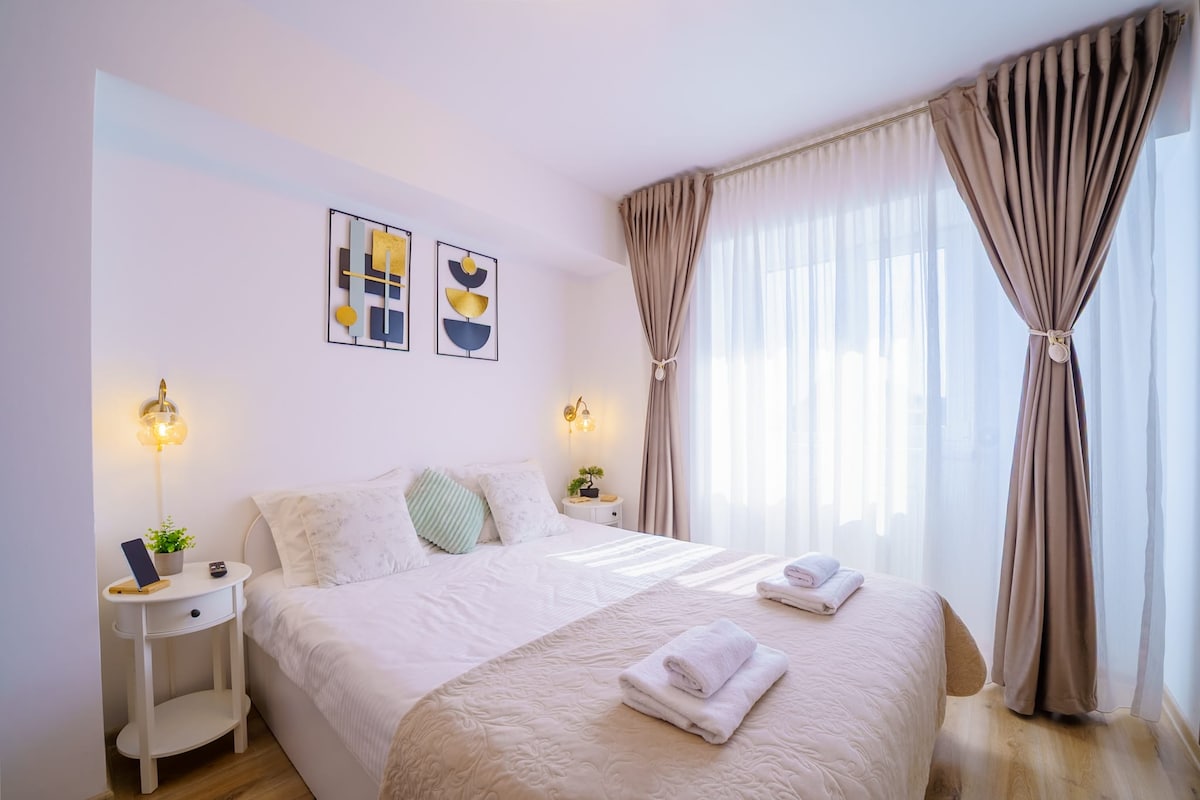 Modern, cozy apartment just 15 min from Iași city centre (Palas & Palatul Culturii), set in a quiet, family-friendly neighborhood with easy public transport links. ✨ Ideal for remote work – dedicated desk space 🐾 Fully pet friendly – bring your dog, cat, or hamster! ☕ Free Wi-Fi, parking & coffee (yes, really!) 🌿 Open layout with soft, calming pastels 🛏️ Comfy bed, fresh linens & a quality mattress Your cozy Iași stay starts here – I’d love to host you!