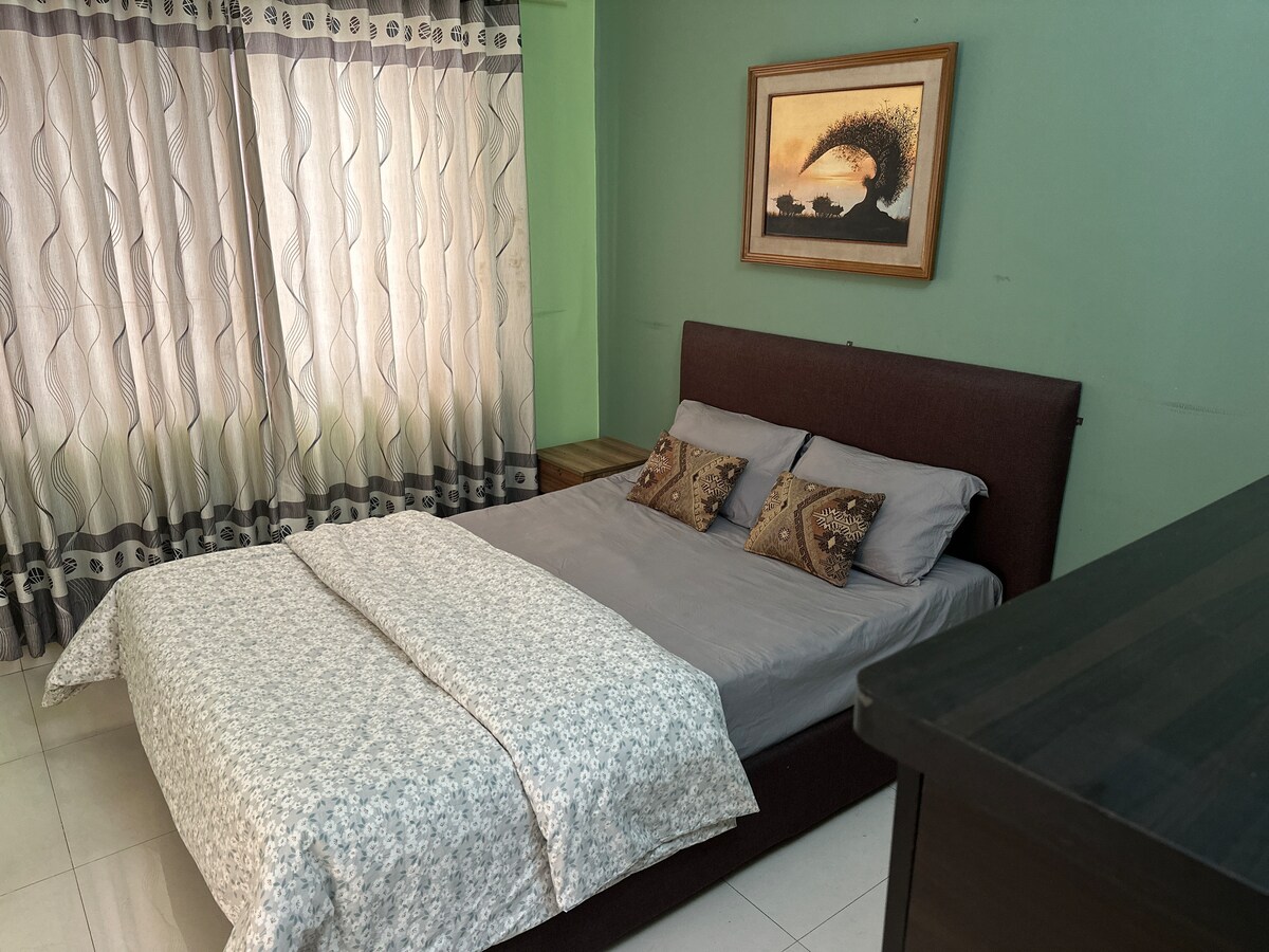 * Fully furnished modern interior with elegant finishing. * Air conditioning, drape curtain and ceiling fans. * Free Wifi, TV, refrigerator and washing machine. * Smart remote door lock. * Stylish switchboards. * Includes a fully equipped kitchen * 2 parking spaces and 02 balcony included. * 24/7 security with elevator. * Ideal for professionals and expats. * Within 5-10 minute drive - Jamuna Future Park, Shwapno, Apon Mart, 300 ft, Airport, Raddison Blu, Army Golf Club, Sports Complex etc.