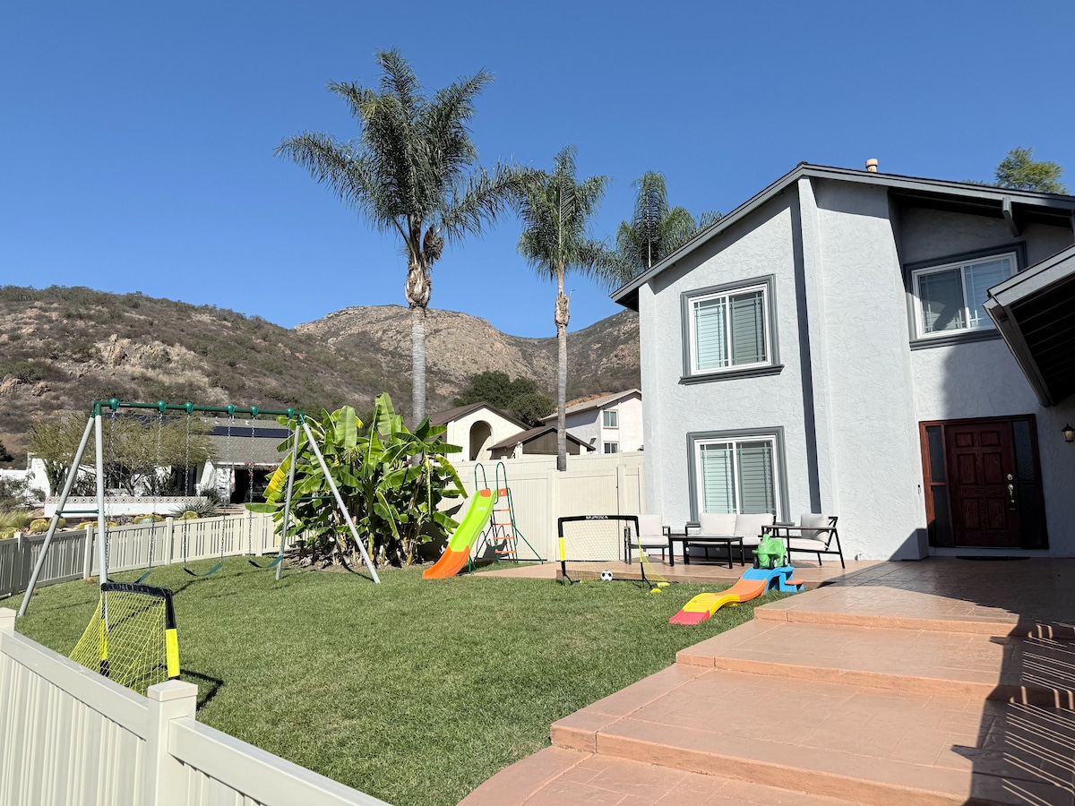 To je vaša popolna hiša za goste s slanim in ogrevanim bazenom ter masažno kadjo. Nahajamo se v zelo mirni in varni soseski v čudovitem San Diegu, 15 minut vožnje do plaž, centra mesta, La Jolle, živalskega vrta, stadionov, Sea Worlda, kongresnega centra in še več. Sprehodite se po sosednjih poteh Mission Trails in jezeru Murray. Pametna TV, Wi-Fi, klimatska naprava z dvema conama, popolnoma opremljena kuhinja, kombinacija pralnega in sušilnega stroja ter vrhunska oprema in pohištvo. Vse, kar potrebujete za nepozabne počitnice. V namestitvi ni kajenja ali vejpanja.