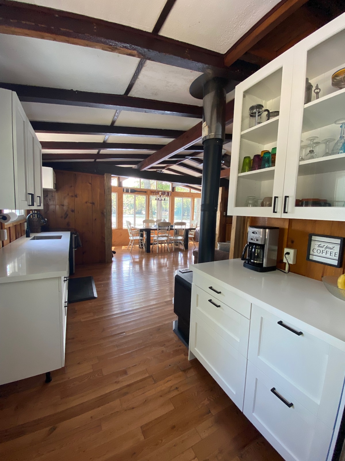 Dediščinski skedenj je postal zen-den! Naša koča z odprtim konceptom, mansardnim slogom in lesenim okvirjem ima izpostavljene tramove, stene skednja in veliko oken, da lahko uživate v pogledu na jezero. Okrašen s plažnim bohom, ki se sreča z vzdušjem iz sredine stoletja, je hkrati udoben in zračen. Zasebna terasa ponuja popolno bivališče za poslušanje ptic in branje dobre knjige. Nook se nahaja na našem hektarju, ob jezeru, poleg našega doma. Upamo, da vam je tukaj všeč tako kot nam!