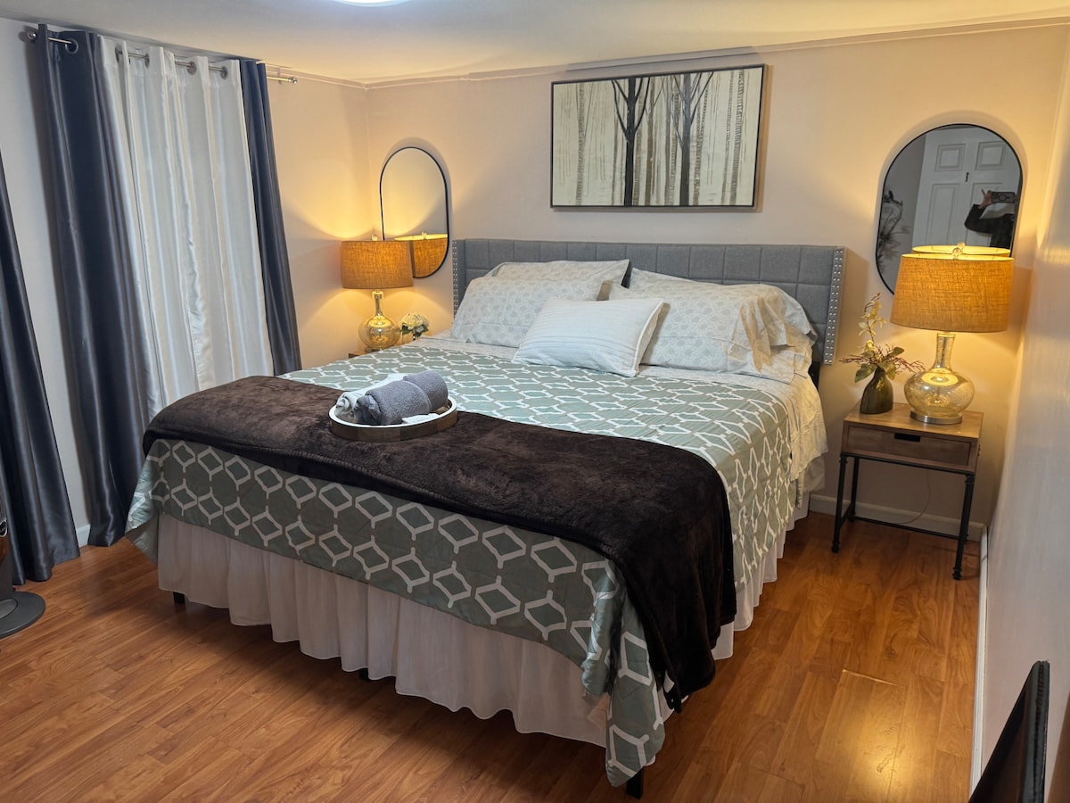 Uživajte v prostornem zasebnem kletnem apartmaju v zgornjem nadstropju, ločenem vhodu/ izhodu z ogromnim salonom/družinsko sobo, 1 udobno spalnico in sodobno kopalnico. Sprostite se z dvema pametnima televizorjema 55 v spalnici in 65 v dnevni sobi s hitrim omrežjem Wi-Fi z delovnimi postajami z 31-palčnim monitorjem in udobno sedežno garnituro ali pa se sprostite po raziskovanju Washingtona, National Harborja in FedEx Field, ki je le nekaj minut stran. Zaradi brezplačnega parkiranja in zasebnega vhoda je to popolno prenočišče za pare, samostojne popotnike ali poslovne goste. Čisto, tiho in gostoljubno