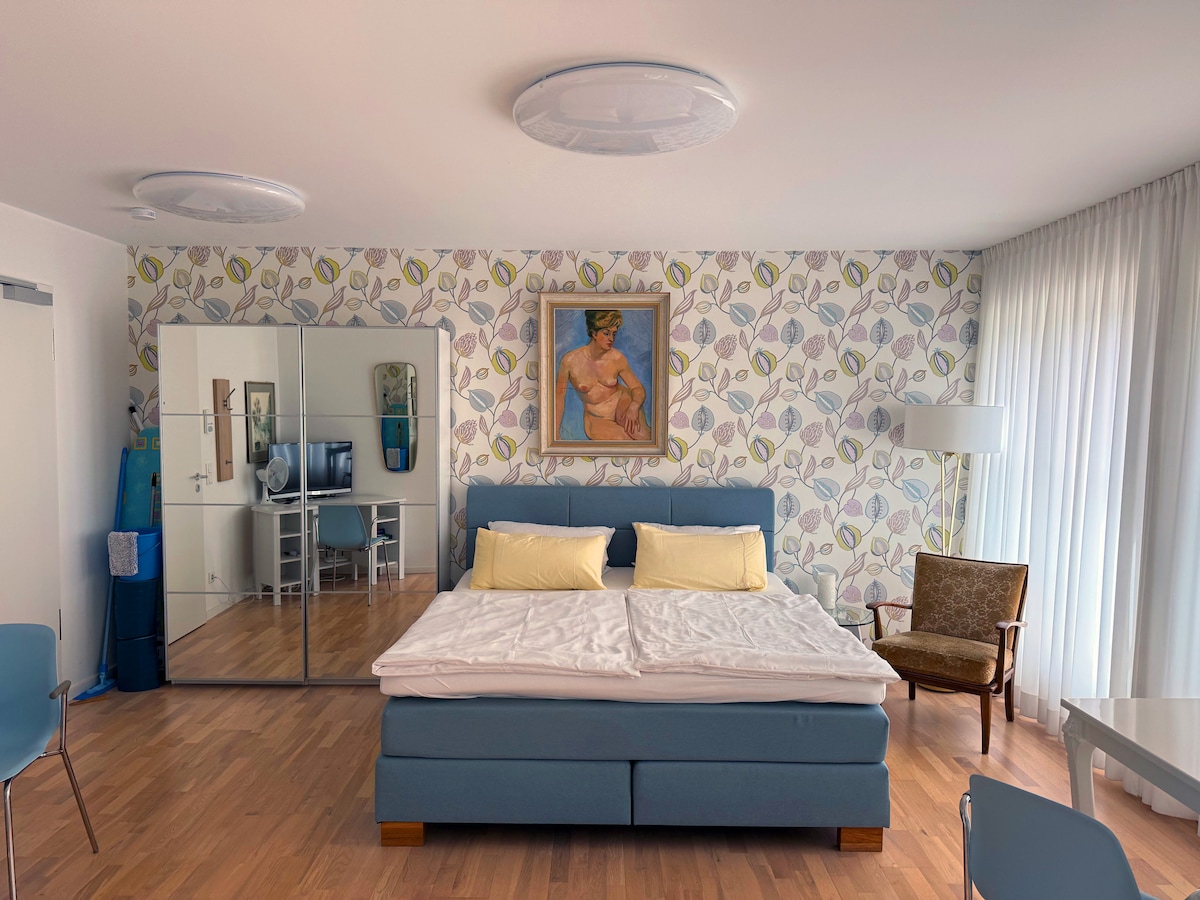 Das Appartement ist zentral in Düsseldorf -Friedrichstadt gelegen. Das Appartement besteht aus einem Ess- und Wohnbereich mit Schlafsofa (mit durchgehender Matratze) sowie einem Schlafzimmer. -Smart-TV und Balkon. Im separaten Schlafzimmer befindet sich ein großes Doppelbett und ein geräumiger Kleiderschrank. Dort ist auch ein heller, großer Schreibtisch vorhanden. Dort kann auch die 3. Person auf dem Extrabett schlafen. Die Betten sind bereits bezogen und Handtücher liegen bereit.