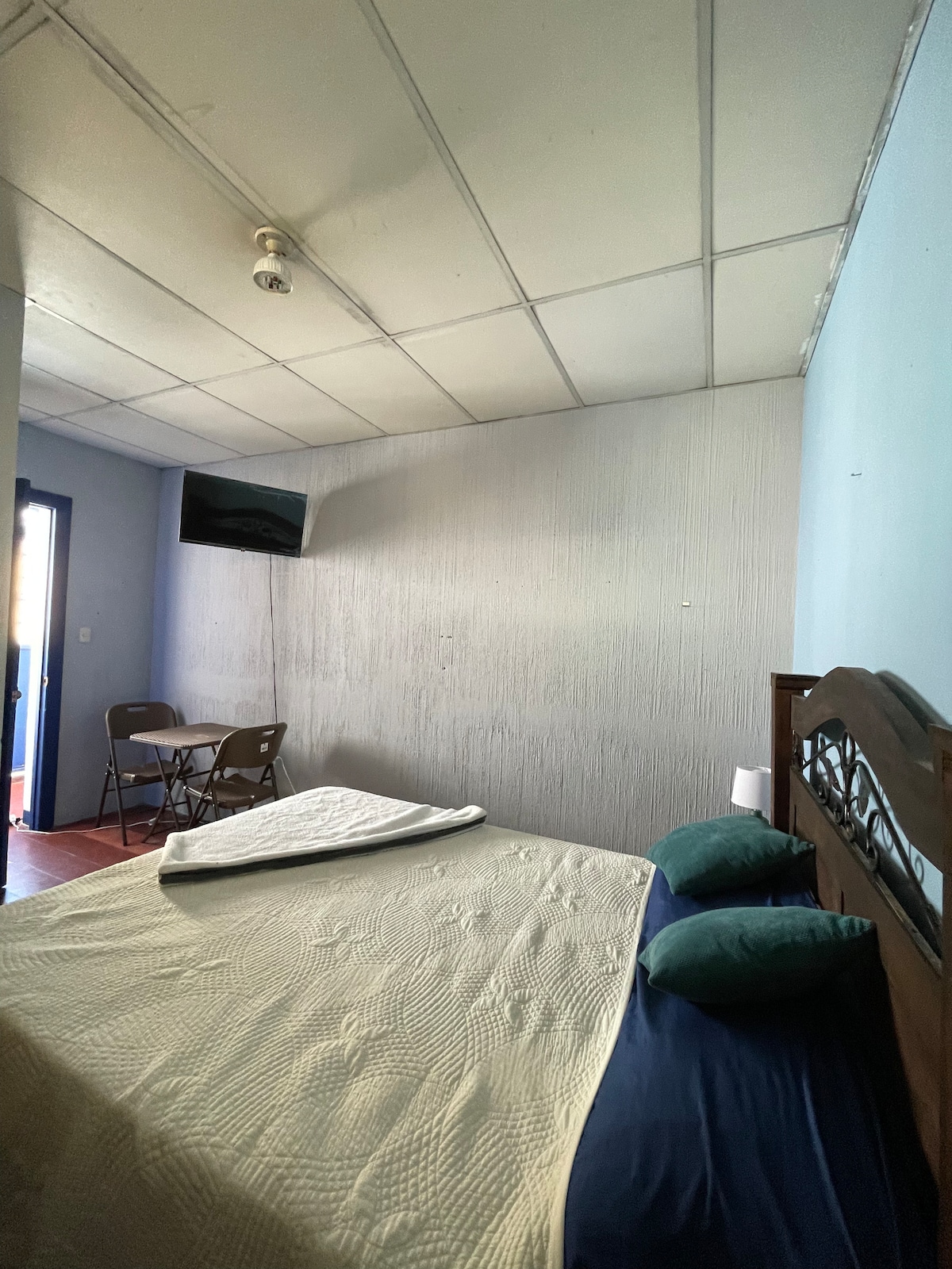 Disfruta de una acogedora habitación en el segundo piso, la habitación cuenta con una cómoda cama matrimonial, TV de pantalla plana. Agua caliente para tu comodidad y Wi-Fi gratuito. Es el espacio perfecto para relajarte y descansar después de un día de aventuras. Parqueo interno según disponibilidad ( se tienen 3 parqueos internos). El parqueo no se ofrece con tu reserva, afuera de la propiedad hay espacio para estacionar. Actualizado recientemente para tu comodidad. 😎