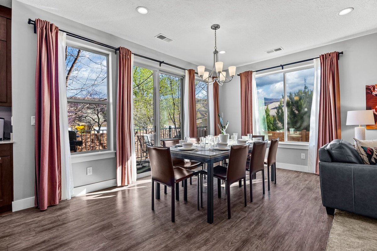 Naš mestni dom združuje sodobno eleganco z udobjem doma. Naše prenočišče se nahaja v mirni ulici s pogledom na zgornji balkon na portalu Colorado River Portal in nudi prostorno kombinirano kuhinjo/dnevno sobo/jedilnico, pralnico, 3,5 kopalnice in zasebno garažo za dva avtomobila. Štiri spalnice v prenočišču bodo udobno spale 8 oseb. Arches and Canyonlands National Parks are a short drive from the home, downtown Moab is minutes away with shopping, restaurants, and outdoor outfitters.