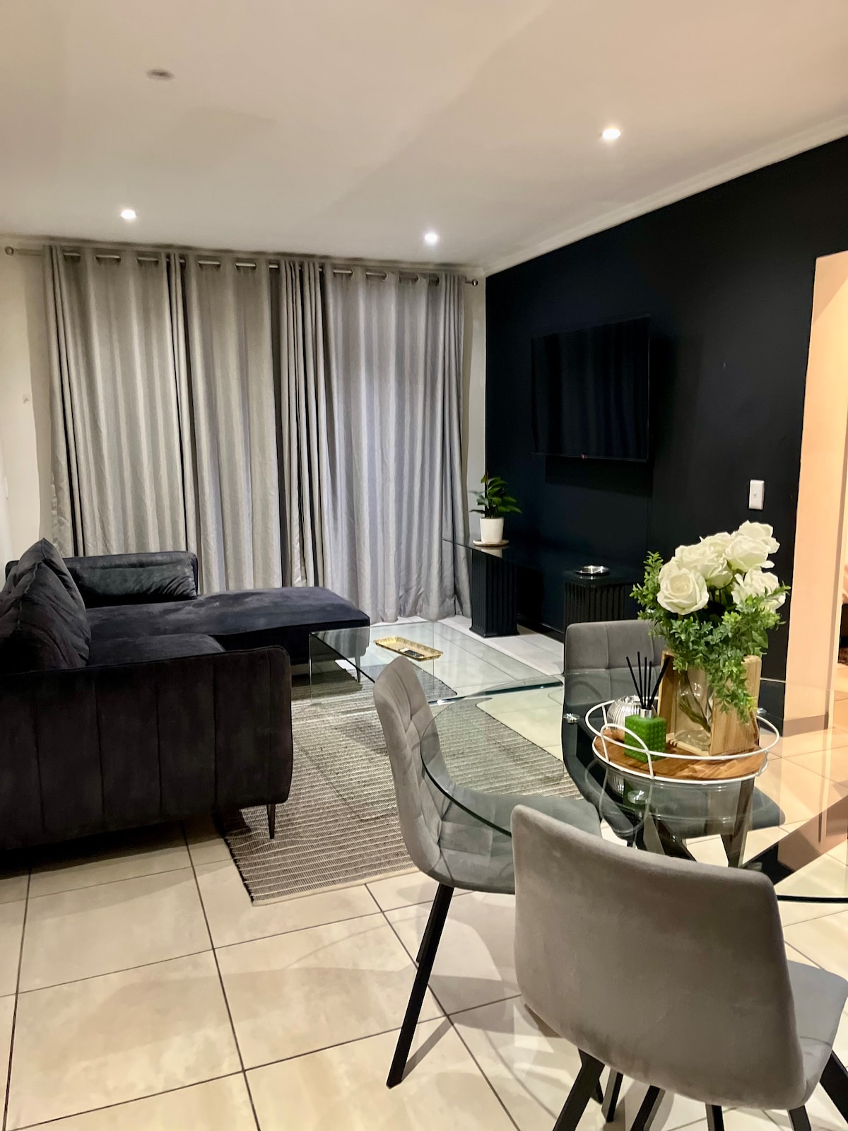 15 minut OD OR Tambo. Ta eleganten črno-beli prostor v zavarovanem ograjenem kompleksu ponuja popolno mešanico udobja in priročnosti. Uživajte v namenskem parkirnem mestu, življenjskem slogu in dostopu do vrat na daljavo. Z razkošno zakonsko posteljo (Queen) in zakonsko posteljo (Queen), pisarniškim prostorom in hitrim Wi-Fi-jem je idealen za delo ali sprostitev. Popolnoma opremljena kuhinja vključuje plinsko kuhalno ploščo in pomivalni stroj. Sprostite se na udobnem balkonu in uživajte v vrhunskem pohištvu, posteljnini in osnovni jedilnici.