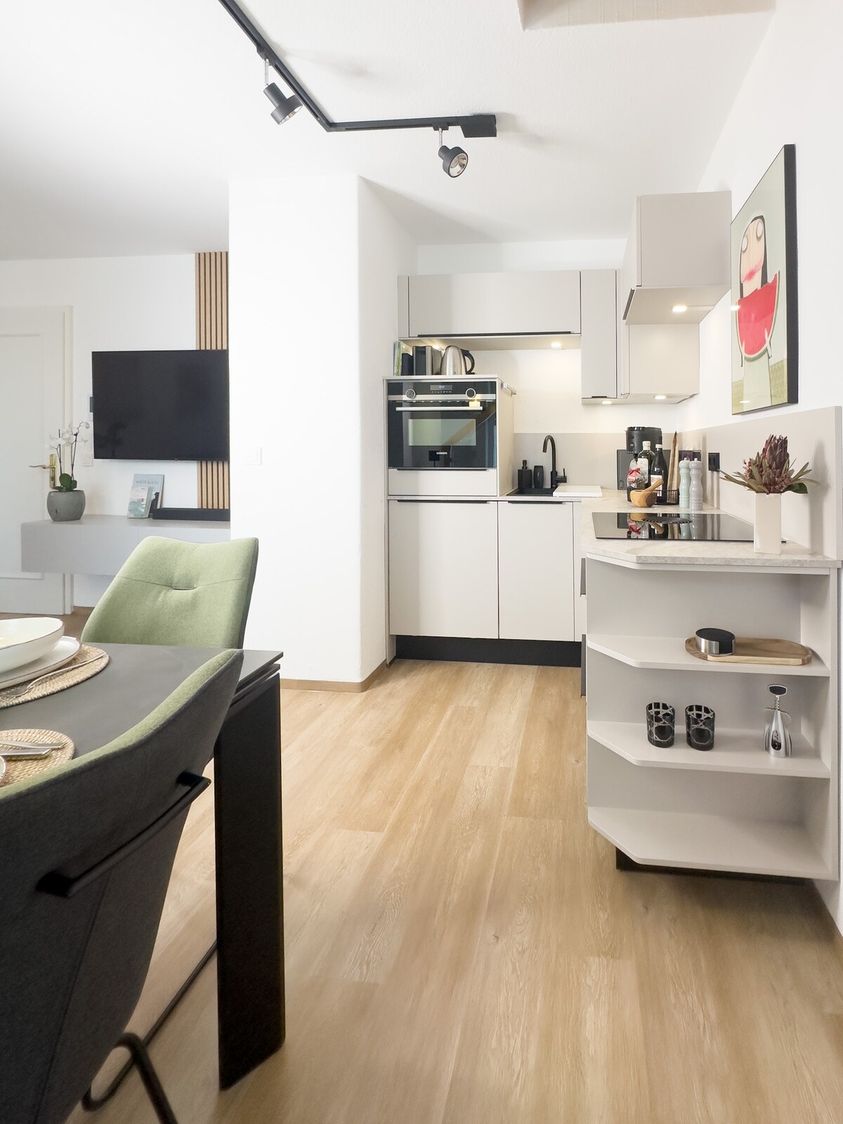 Čudovito, svetlo in novo galerijsko stanovanje v središču vasi Langen. Kavarna s ponudbo zajtrka / pekarna v sosednji stavbi. Majhen supermarket v pritličju. Vaška pivnica je na nasprotni strani ulice. Sončna svetloba in gorski razgledi. Lesena tla, opremljena z elegantnim pohištvom. Na voljo je zasebno podzemno parkirno mesto. Polnilna postaja za e-mobilnost na podzemnem parkirnem mestu za vtič tipa 2 (11 kW, izmenični tok). Kolesarnica, ki jo je mogoče zakleniti. Optična internetna povezava s hitrostjo 250 Mbit