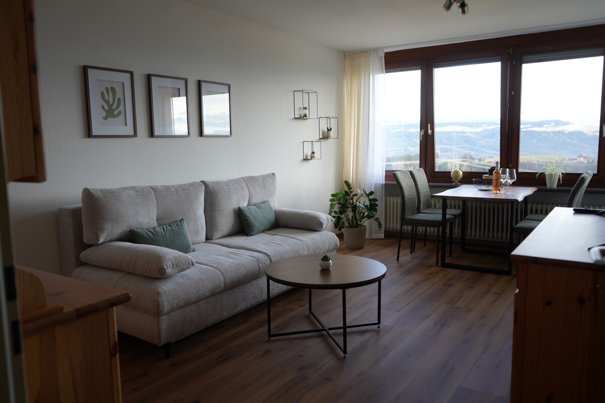 Ljubko urejeno stanovanje 45m2 na pobočju zastavljalnice z lastnim vhodom. Svetlo in udobno z najboljšim pogledom na Bregenz in Bodensko jezero. Lep prostor za sedenje pred apartmajem za uživanje v sončnih zahodih. Idealno kot izhodišče za pohodništvo in za dnevne izlete okoli Bodenskega jezera ali v Vorarlbergu. Na voljo je lastno parkirno mesto. Kuhinja-dnevna soba z velikim kavčem (160x200), spalnica z zakonsko posteljo (180x200), Wi-Fi, velik kuhinjski blok, štedilnik, parnik, aparat za kavo cafissimo