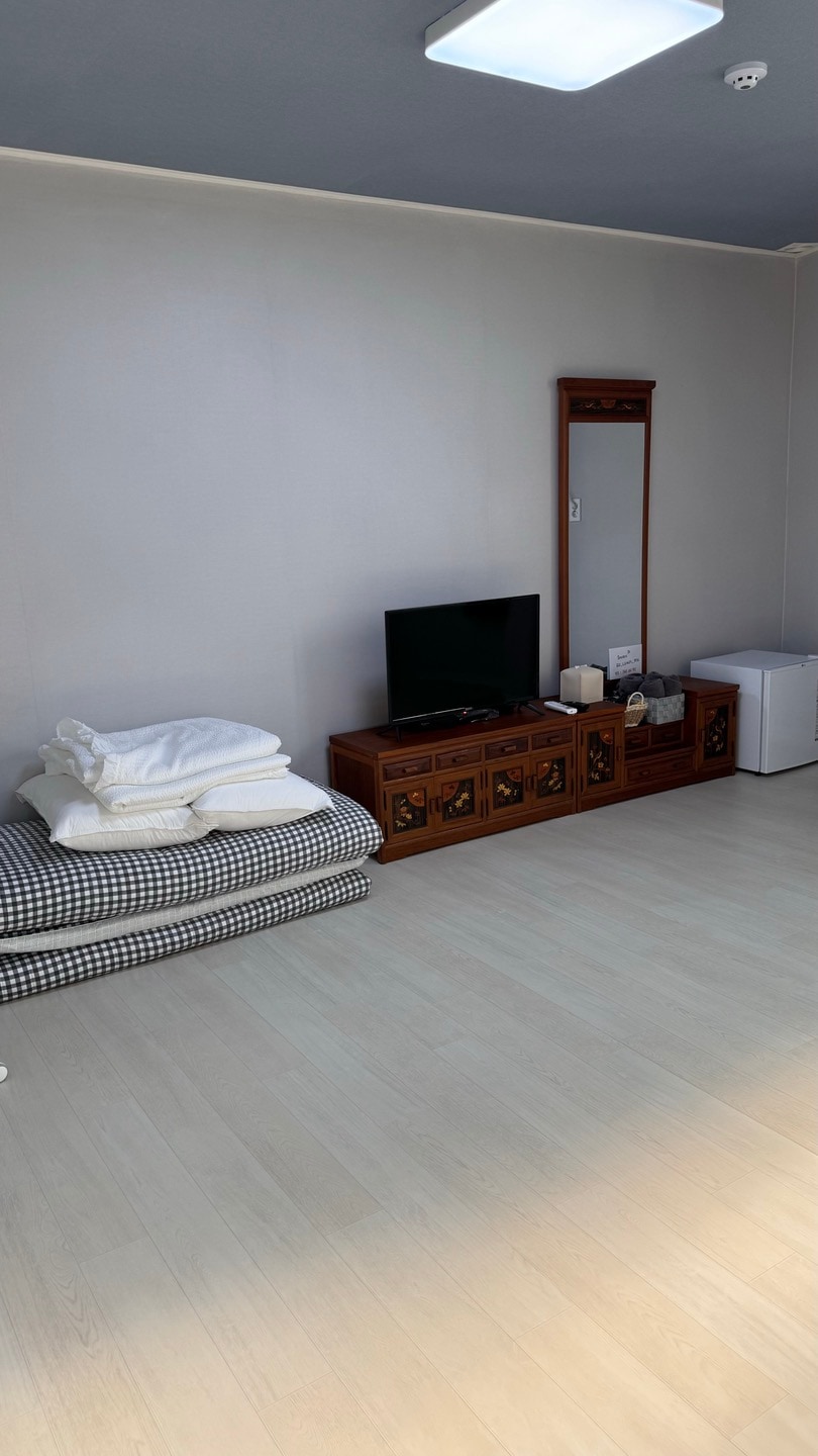 To je podstrešno stanovanje s 50-pyeong. Gre za urejen prostor, ki ga sestavljajo 3 sobe, prostorna dnevna soba in 2 kopalnici ter je dobro opremljen z osnovnimi bivalnimi potrebščinami. • Opremljen z obešalniki in klimatsko napravo, ki zagotavlja prijetno okolje. • Pralni stroj je na voljo, na voljo pa je tudi kuhinjski prostor. Na voljo je mikrovalovna pečica. Na voljo sta lonec za kavo in čistilec vode. Kuhanje je težko (gre za hotel) • Poleti lahko uživate v hlajenju, pozimi pa ogrevanje s kotlom. • TV in internet (Wi-Fi) sta nameščena, zato lahko uživate v prostem času, ko vam ustreza. To je skupinska soba, ki lahko sprejme največ 16 oseb ali več.
