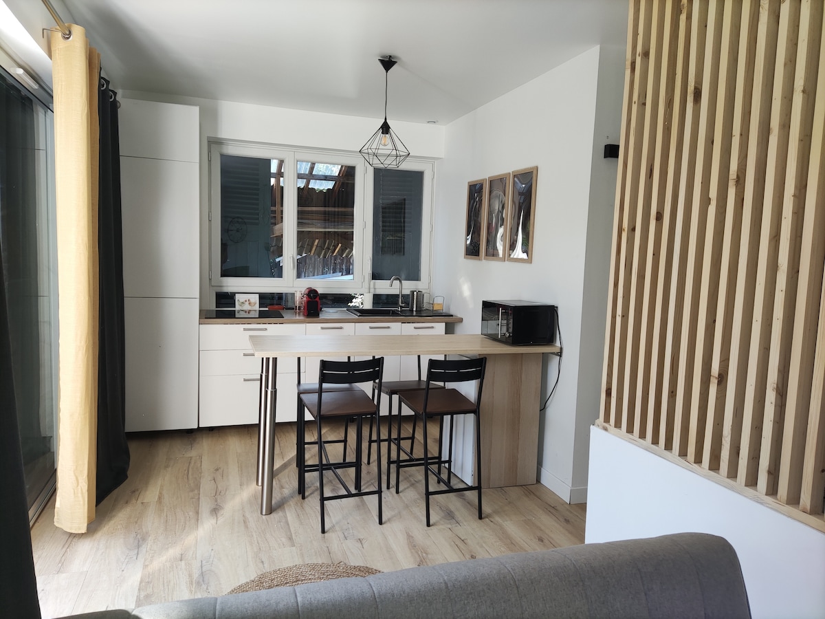 Privoščite si wellness oddih v tem 60 m² velikem stanovanju, ki se nahaja v kraju La Combe-de-Lancey, med Chambéryjem in Grenoblejem. Zasebna terasa s površino 40 m2 vas vabi, da se sprostite z masažno kadjo z mozaikom za 4 osebe in savno ter uživate v panoramskem razgledu na mesta in gore. Notranjost z japonskimi detajli ustvarja zen vzdušje, ki je kot nalašč za sprostitev v paru ali družini. Rezervacija je možna za družino (4-5 p). Za skupino prijateljev največ 2 osebi.