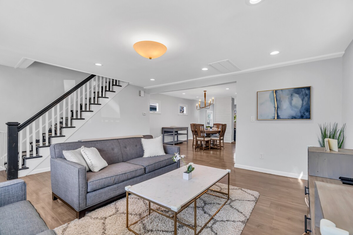 Rezervirajte sproščujoče počitnice na plaži še danes. Odprt tloris, popolnoma opremljena kuhinja, dve postelji, dovolj sedežev, veliko dvorišče, ločena hiša za goste. Nahaja se 1/4 milje (15 minut hoje) od plaže. Ognjišče, zunanja sedežna garnitura, garaža. Blizu Asbury Parka, Pier Villagea in trajekta do Manhattna. Wi-Fi, pralni in sušilni stroj, pomivalni stroj, otoška kuhinja, jedilnica. Mirna soseska neposredno nasproti parka Manahasset. Vključene so 4 značke za plažo Long Branch Beach.