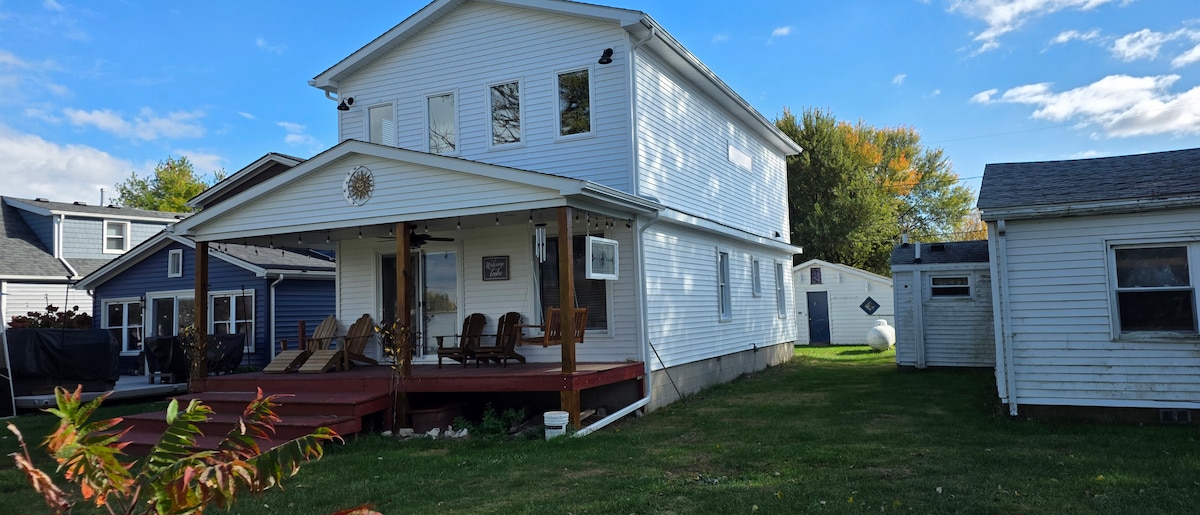 **Nova postelja 9.17.24**. Uživajte na jezeru z bližnjimi državnimi parki in čudovitimi plažami. Sprostite se v na novo prenovljeni hiši z obokanimi stropi in sodobnimi udobji, 10 minut od središča Toleda, koncerti, Mudhens Baseball, hokej Walleye, drsanja in svetovno znanega živalskega vrta Toledo ali muzeja umetnosti Toledo, simfonije, restavracij in trgovin. Uživajte v masažni kadi za 2 osebi, ognjišču, žaru, ribolovu, pametni televiziji, brezžičnem stereo uređaju. Pristanišče ima spust s kajakom in lestev za enostaven dostop, na voljo pa sta 2 kajaka.