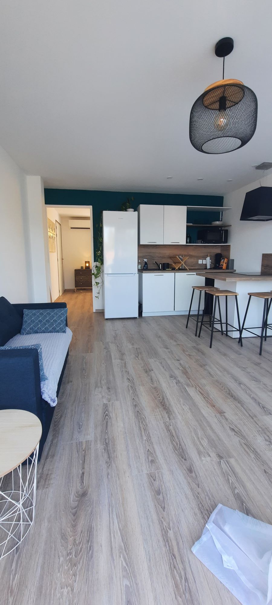 Stanovanje tipa F2 s pogledom na morje. 1 spalnica + nov in zelo udoben kabriolet. Opremljena kuhinja. Dvigalo. Avtobusna postaja v bližini. Brezplačno parkiranje. 5 minut od plaže. Mestni vhod, nedaleč od letališča (vendar ne v prehodu letal) in središča mesta. Trgovine v bližini. (lekarna, pekarna, catering...) registracijska številka (2A0040001740F)
