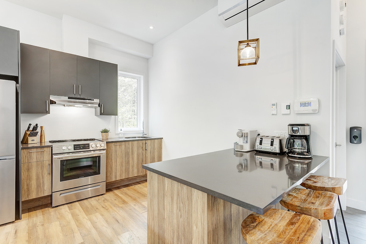 Ta čudovita koča s petimi spalnicami se nahaja le 2 minuti od smučišča Versant Nord in 12 minut od narodnega parka Mont-Tremblant. Idealno za družinska srečanja, izlete s prijatelji ali ustvarjalne delovne počitnice, saj ponuja popolno mešanico udobja in narave. Po dnevu na prostem uživajte v masažni kadi, na žaru in v pergoli. V notranjosti imajo gostje dostop do pametnega televizorja, povezave Wi-Fi, družabnih iger in namiznega namiznega nogometa za celoletno zabavo.