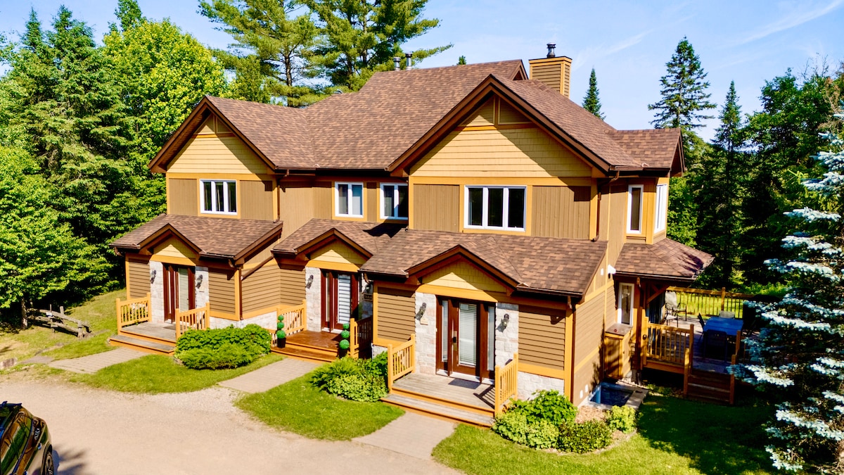 Fall in love with Tremblant. Our 5-bedroom home is nestled amongst trees, with abundant sunlight and a stunning view of Mont Tremblant. It is a four-season paradise just steps away from a trail network (biking, cross-country skiing) and a 6-minute drive to the ski hill. Lake, coffee shops, boutiques, restaurants, a hockey rink, a grocery store, and more are all accessible within a short walk in Old Tremblant. Enjoy complimentary VIP parking at the mountain with a short walk to the gondola.