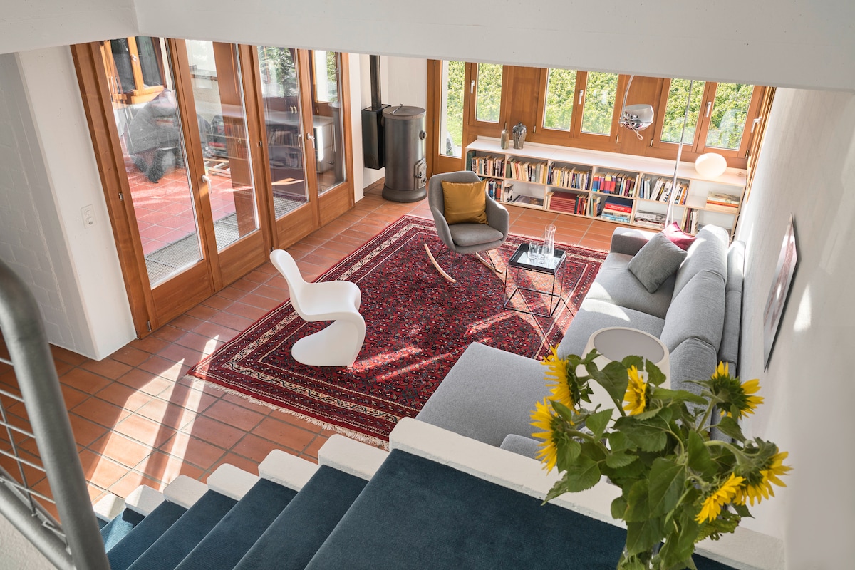 Lehne dich zurück und entspanne – in dieser ruhigen, stilvollen Unterkunft mit einer Wohnfläche von rund 125m2 inmitten der Natur. Deine exklusive Auszeit bei 360grad Weitsicht Säntis/Bodensee und doch so nah zu Attraktionen wie St.Gallen/Appenzell. Dieses 200jährige Appenzellerhaus thront hoch über Herisau AR und wird von seinen Besitzern liebevoll „GöttiFritz“ genannt. Authentisch erstrahlt es in einer traumhaften Berg- und Hügelkulisse – ein wahrer Rückzugsort für die Seele.