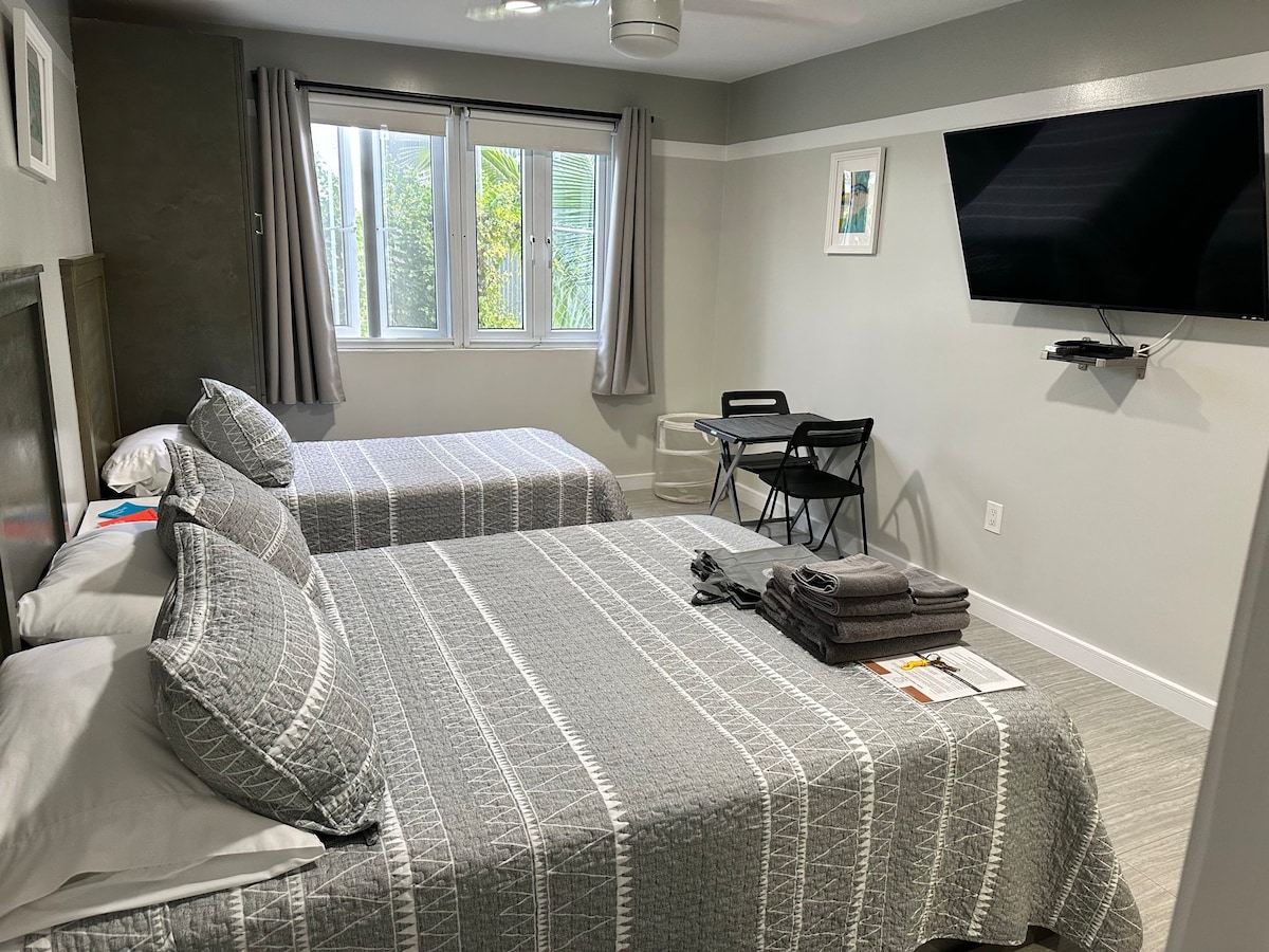 Uživajte v elegantnem enosobnem stanovanju v središču mesta, ki se nahaja v središču mesta, v bližini letovišča Atlantis Resort, plaže Paradise Island Beach, nakupovalnega središča in še več Enota ima 1 spalnico, 1,5 kopalnice in napihljivo vzmetnico z zakonsko posteljo. Ima Wi-Fi in 2 pametna televizorja s kabelsko televizijo. Vključena je kava, čaj in pitna voda. Kuhinja je popolnoma opremljena. Imamo tudi mini otroško posteljico za malčke. Bazen je v sklopu prenočišča.