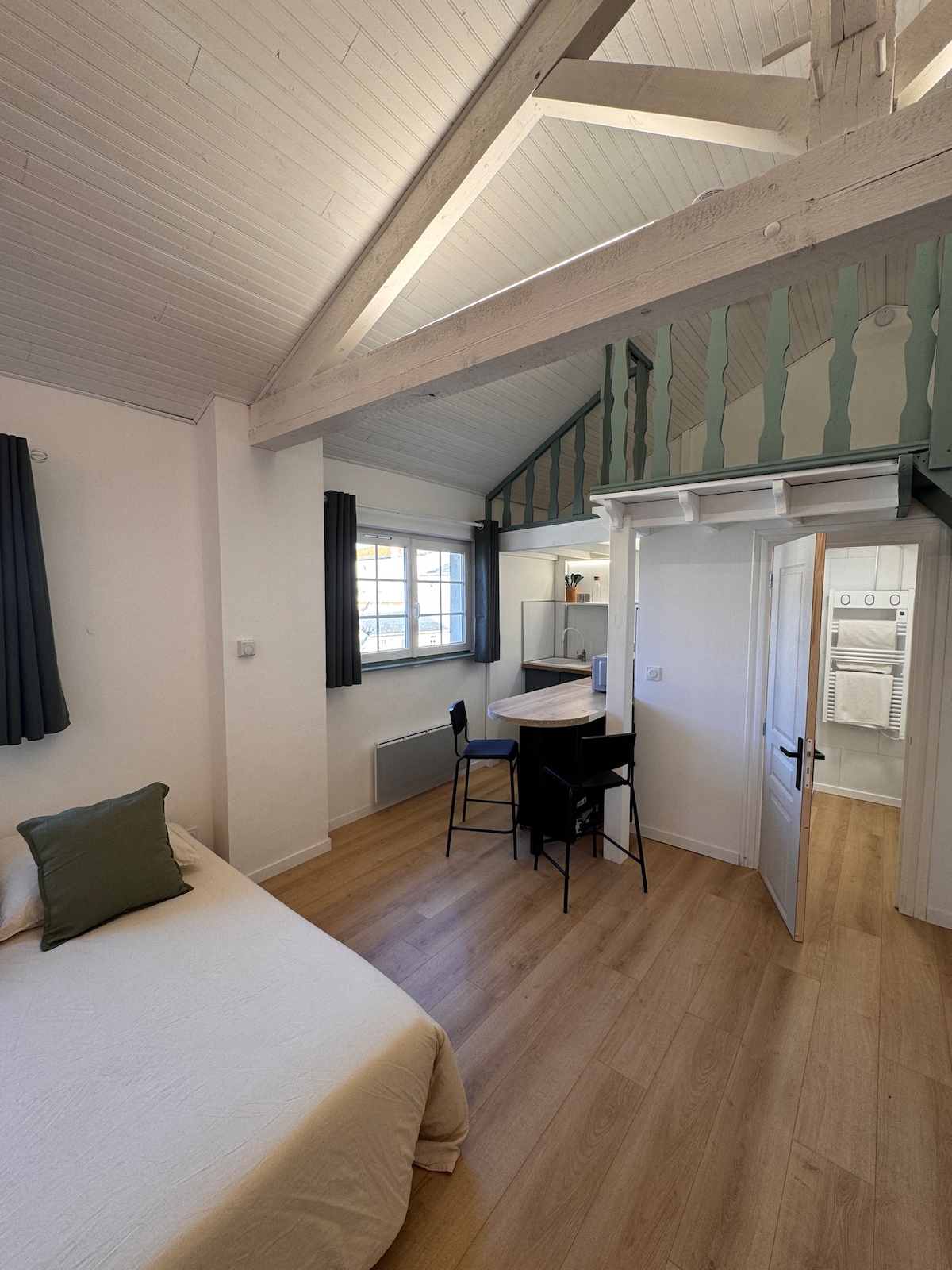 V osrčju Montaiguja, svetlega in popolnoma prenovljenega studia velikosti 26m ². Železniška postaja SNCF 7 min hoje. Château de Tiffauges je oddaljen 15 min. Clisson 15 min. Puy du Fou na 40 min. Nantes je oddaljen 25 min. Cestnina na avtocesti A83 (Nantes/Bordeaux) 7 min. 1 ura ob plaži Nastanitev z opremljeno kuhinjo, posodo, 2-sedežnim kabrioletom, povezano televizijo, wi-fi. Nespresso, grelnik vode, indukcijska plošča, mikrovalovna pečica. 140 zakonska postelja. Kopalnica s prho, stranišče, sušilnik za lase. Posteljnina in brisače so zagotovljene.