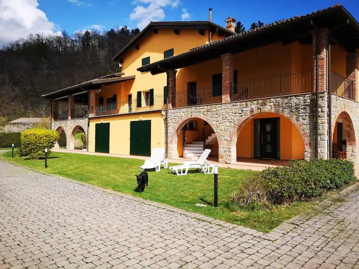 Sprostite se v tem stanovanju z neodvisnim vhodom, potopljenim v hribe Bologne, območje Valsamoggia, približno 20 km od Bologne, dostopno z avtomobilom. Stanovanje je del kmečke hiše iz poznih 1800-ih, ki je bila prenovljena in ohranja prvotno strukturo: izpostavljen leseni strop, kamin, originalno pohištvo. Zunaj je na voljo: paviljon z mizo, fotelji, žar. Okolica lastnine 3 hektarjev z jezerom. Wi-Fi je na voljo tudi za pametno delo.