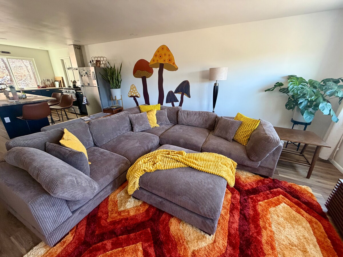 To je čudovito stanovanje na ravni vrta, ki se nahaja v prenočišču po meri v mirnem delu mesta. Iz dnevne sobe in dvorišča boste uživali v razgledu na gore. Do restavracij in trgovin z živili z ekološko pridelano hrano se boste lahko sprehodili peš. To je odličen kraj za sprostitev, meditacijo in pisanje ali kraj, kjer se lahko odpravite na pohod, raziskovanje lokalnih duhovnih središč ali sprehod po enem od bližnjih potokov ali uživanje v temnem nebu.