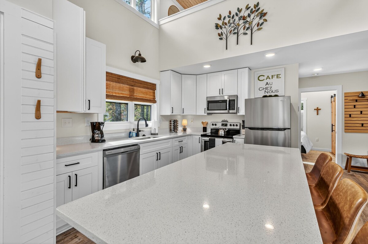 Pobegnite v to svetlo in prostorno počitniško hišo z 2 spalnicama in 2 kopalnicama ob jezeru – eno največjih hiš v kompleksu Retreat at Water’s Edge. Uživajte v kavi na pokriti verandi, zaplavajte s kajakom ali lovite ribe s polzasebnega pomola, ob sončnem zahodu pa se družite ob ognjišču. Nekaj minut stran od vrhunskih pohodniških poti, vključno z nacionalno priznano potjo Fiery Gizzard Trail, vendar ob mirnem jezeru, primernem za družine, ki je kot nalašč za otroke, da raziskujejo in se sprostijo. Idealno za pare, družine ali oboje.