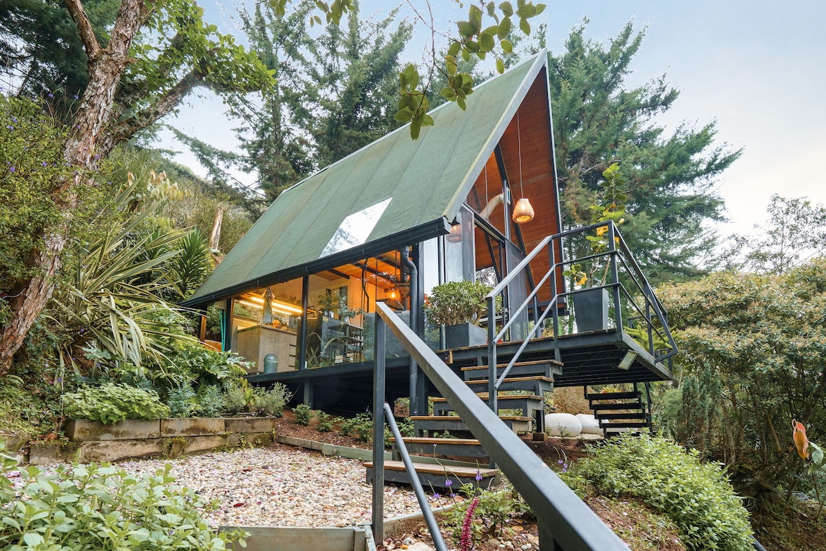Intimni glamping, obdan z gozdom, ki ga spremlja nenehen zvok potoka in ptičje petje. Lesena hiška v obliki črke A, polna naravne svetlobe in obdana z zelenjem, je idealna za sprostitev in uživanje brez hitenja. Ima zakonsko posteljo, kopalnico, opremljeno kuhinjo, udobno dnevno sobo, zasebno teraso in prostor za ogenj za dolge noči. Kraj za nazdravljanje, klepet brez ure, odklop od sveta in mirno prebujanje med El Retirom in La Cejo.