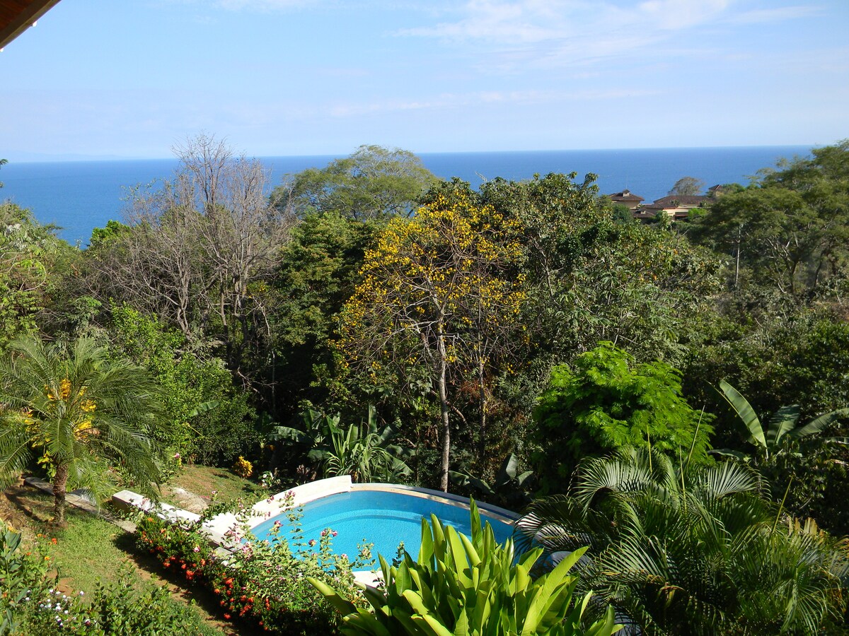 Ta osamljena samostojna Casita z zasebnim bazenom, zakonsko posteljo, čudovito kopalnico, kuhinjsko nišo, al fresco jedilnico in prostor za sedenje je mirno zatočišče za sprostitev in pomlajevanje, ki se nahaja nad Playa Montezuma v bujnem tropskem vrtu s spektakularnim pogledom na morje in nežnim morskim vetrom. Opice, papige, pizote in tukani so redni obiskovalci! Plaža, slavni slap Montezuma in odlične restavracije so v bližini.