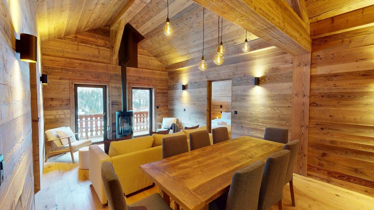 Ce superbe appartement, dans les combles du chalet, peux accueillir jusqu’à 9 personnes dans un cadre unique. 6,5 pièces, il séduit par ses volumes généreux et sa belle luminosité. Il comprend un salon convivial, trois chambres doubles, et une chambre en mezzanine équipée de trois lits simples, quatre salles de bains modernes. Pour un confort absolu, profitez d’un sauna avec vue sur les montagnes, d’un spa, et d’une ambiance apaisante. Les poêles ne sont pas utilisables.