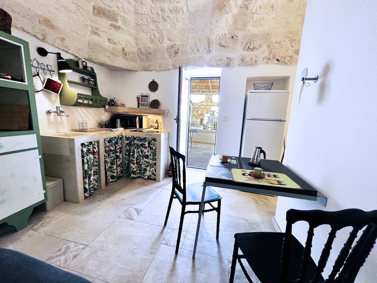 CIS: BR07401291000000188 NIN: IT074012B400033730 Doživite čaroben občutek bivanja med preteklostjo in sedanjostjo - to je zgodovinsko prenočišče! Starinska tla in kamnite stene so ozadje okolja, opremljenega z oblikovalskimi predmeti, staro keramiko in lokalnim pohištvom. Velika zasebna terasa s solarijem in vročo prho vas bo navdušila: ob sončnem zahodu se lahko sprostite ob kozarcu vina, uživate na soncu na udobnih ležalnikih ali pripravite večerjo v čarobnem apulijskem vzdušju.