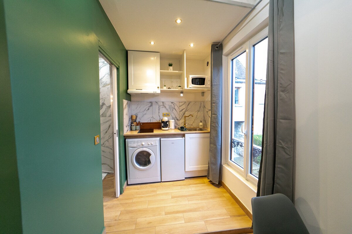 Relax in this quiet, cozy apartment with its own entrance. Located 2 minutes' walk from all amenities (150 m from the bakery), 5 minutes from the train station (1 train per hour to Paris) and the Fontainebleau forest for hiking or climbing. The apartment is located in a quiet pedestrian street, bathed in natural light and equipped with all the comforts you need (fully-equipped kitchen with essentials, TV, wifi).