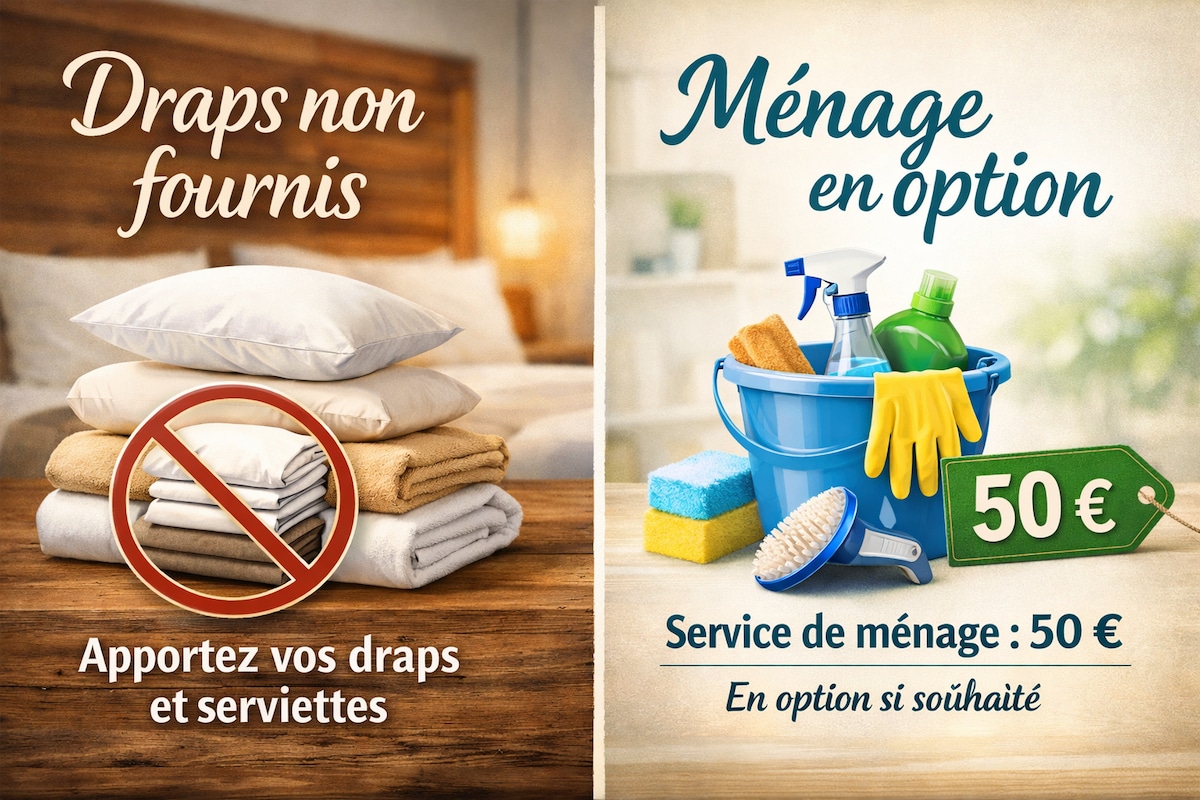 Nova koča v središču Saint Martin des Lilleuls, 15 minut od parka Puy du Fou, ki je okusno urejena, da se boste počutili kot doma. Sestavljena je iz: – 3 spalnice: posteljnina iz vrhunskega hotela 1 velika spalnica s posteljo 160/200 + otroška posteljica 1 spalnica s posteljo 160/200 1 spalnica z 90/200 posteljo + naslanjač -1 popolnoma opremljena kuhinja -salon -stani 1 veliko zaprto dvorišče +garaža rjuhe 10 evrov na posteljo, brisače 5 evrov na osebo V zgornjih spalnicah psi niso dovoljeni.